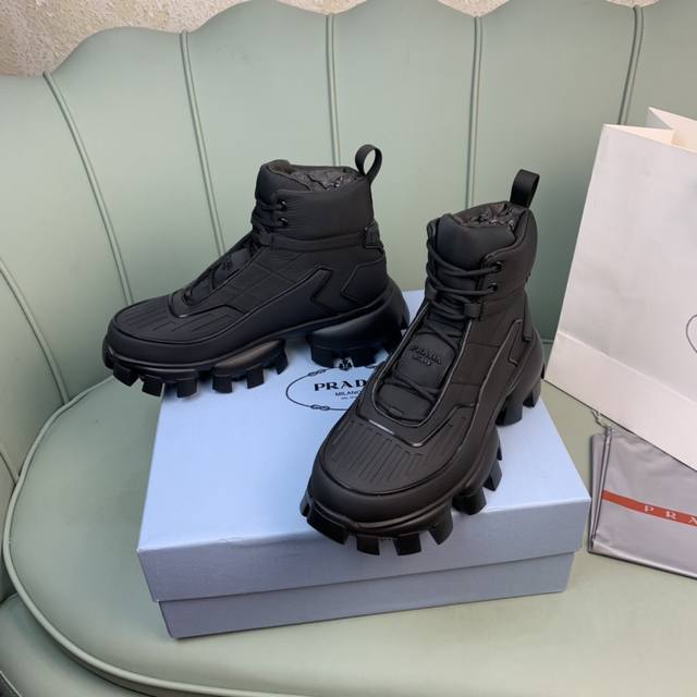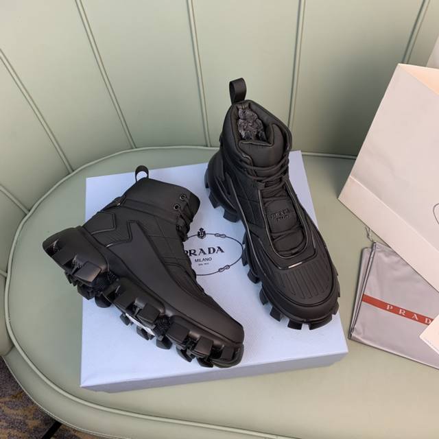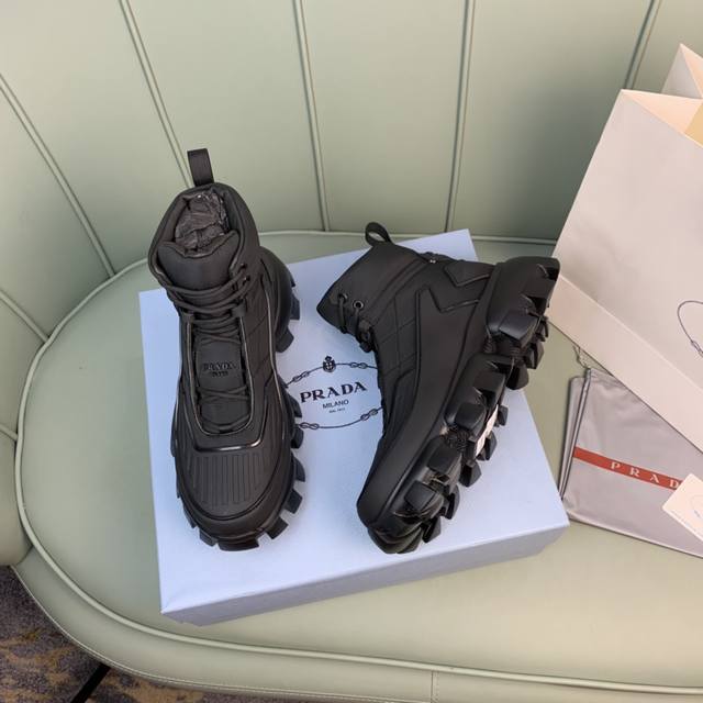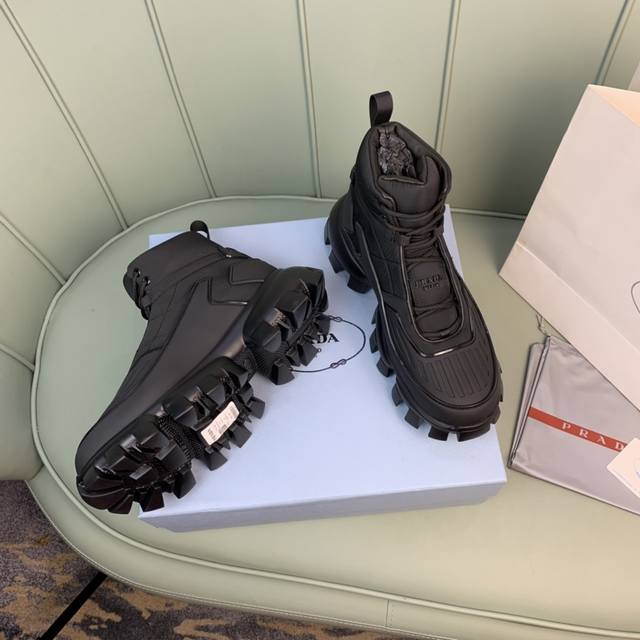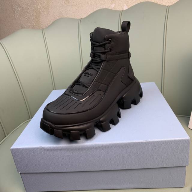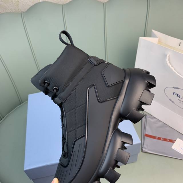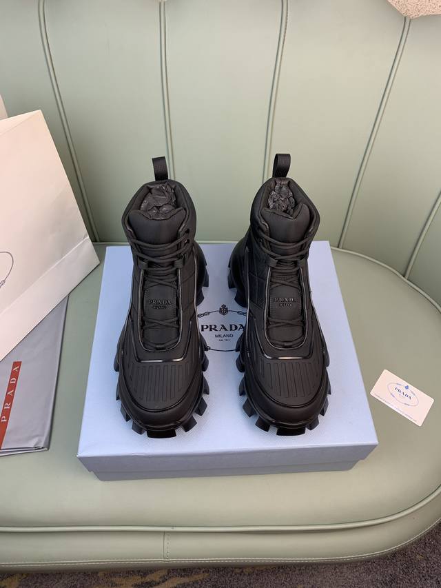 工厂P价 Prada普拉达 爆款男鞋出货 官网同步原版进口牛皮拼接防水面料+牛皮内里,1比1复刻 ,原厂原版轻便发泡大底 38-45...
