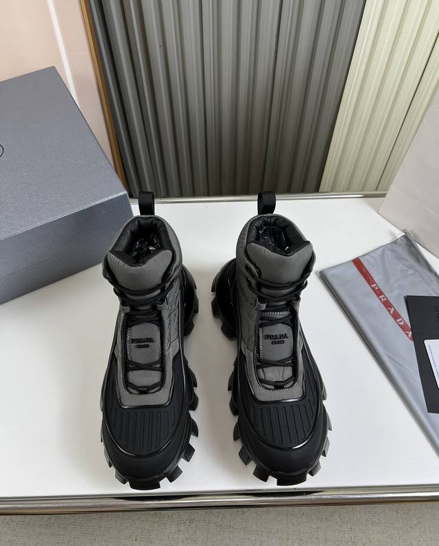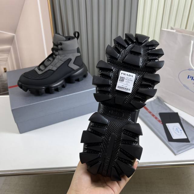 出厂价pp: prada普拉达 秋冬爆款男鞋出货 官网同步: 原版飞织胶片面料+牛皮内里, 1比1复刻 , 原厂原版底, 码数38-45码