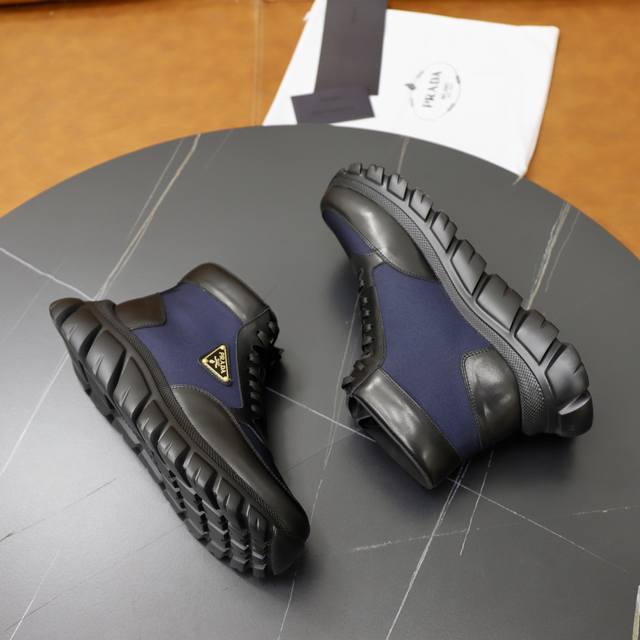 出厂价pp: prada 顶级工艺品,普拉达 专柜同步,靴子高帮原厂配置意大利进口牛皮拼布面料,进口牛皮内里垫,透气舒适,鞋底:原厂特供原版底,原厂跟单货 高品质 欢迎对比,码数 38-44 订做 45 46 DDD