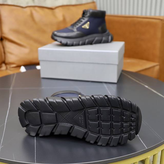 / 出厂价pp: prada 顶级工艺品,普拉达 专柜同步,靴子高帮原厂配置意大利进口牛皮拼布面料,进口牛皮内里垫,透气舒适,鞋底:原厂特供原版底,原厂跟单货 高品