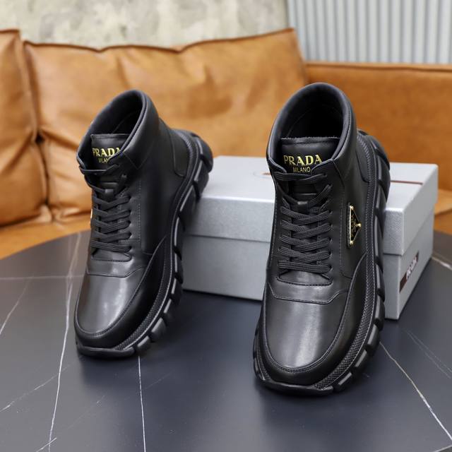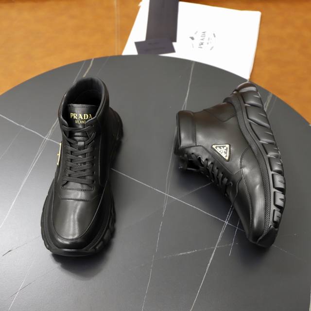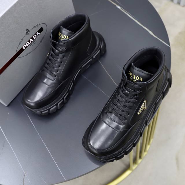 出厂价pp: prada 顶级工艺品,普拉达 专柜同步,靴子高帮原厂配置意大利进口牛皮拼接,进口牛皮内里垫,透气舒适,鞋底:原厂特供原版底,原厂跟单货 高品质 欢迎对比,码数 38-44 订做 45 46 DDD