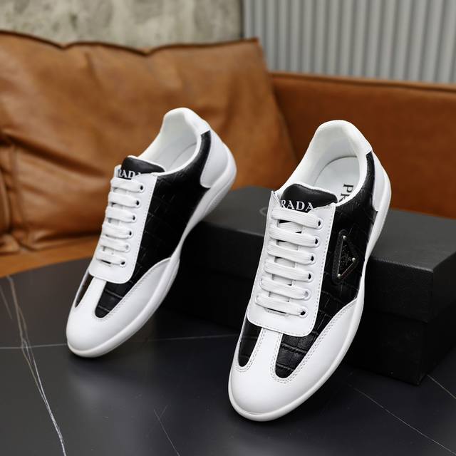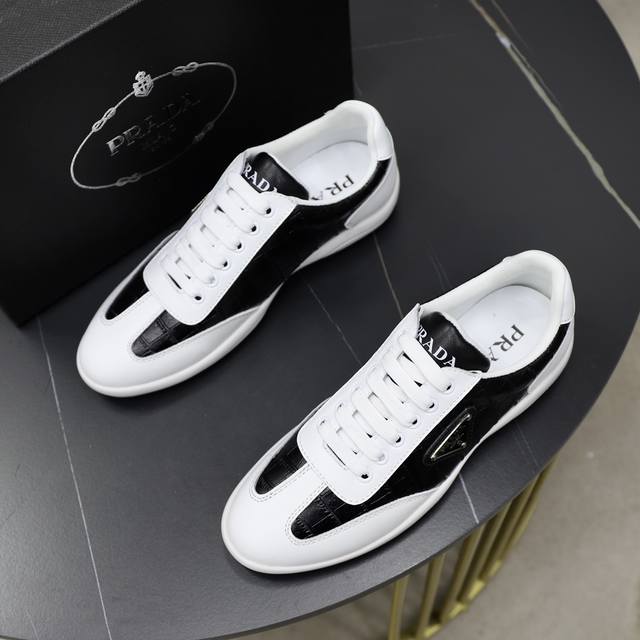 工厂P价 普拉达Prada男士经典休闲鞋 大胆试穿去专柜 面料采用进口牛皮猪皮内里...