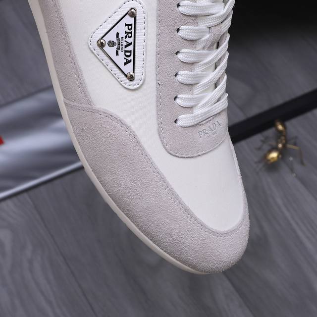 商品商标:Prada [普拉达] 休闲鞋正码.码数: 38-44商品材料:精选 磨砂牛皮拼接布面 网内里 牛皮鞋垫 原版大底