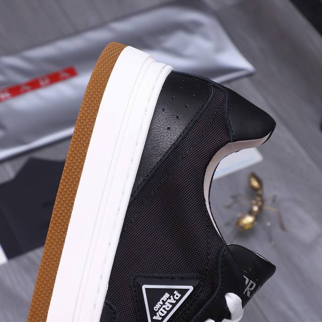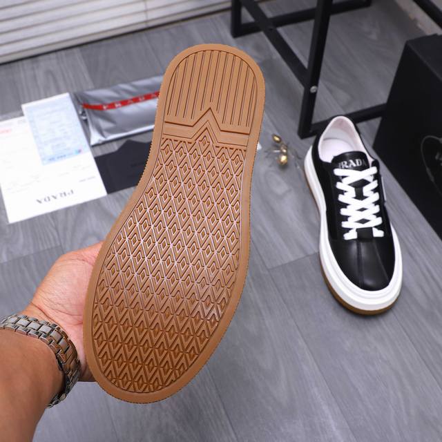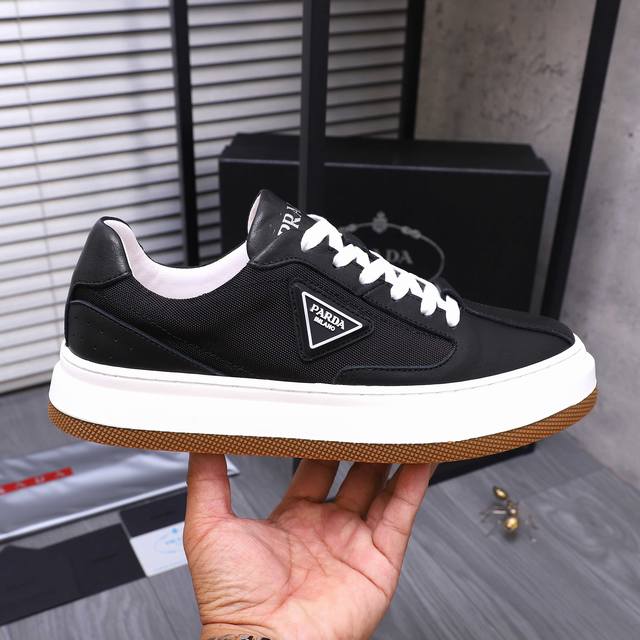 商品商标:Prada 普拉达 商务休闲男鞋 正码码数: 38-44 45定做不退换 商品材料:精选 牛皮拼接网布鞋面 网内里 牛皮鞋垫 橡胶大底