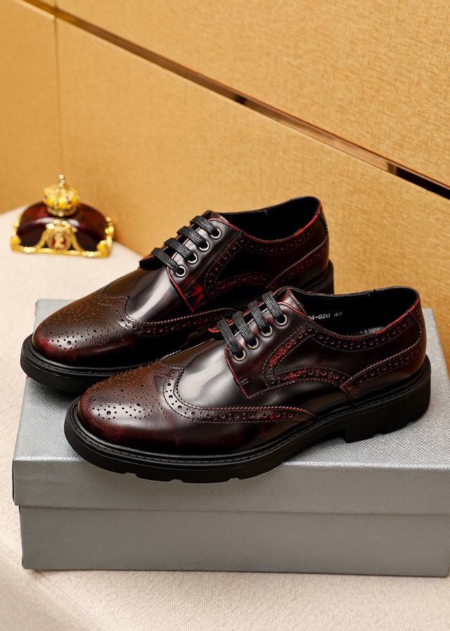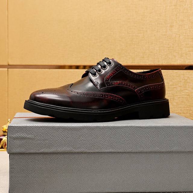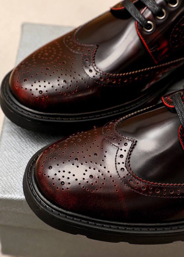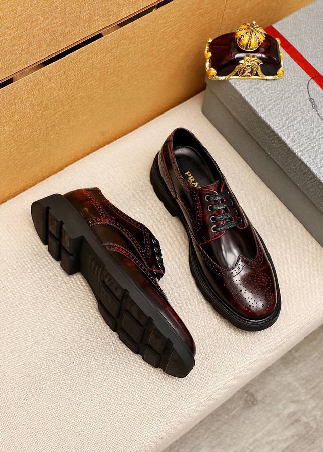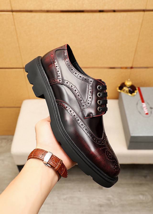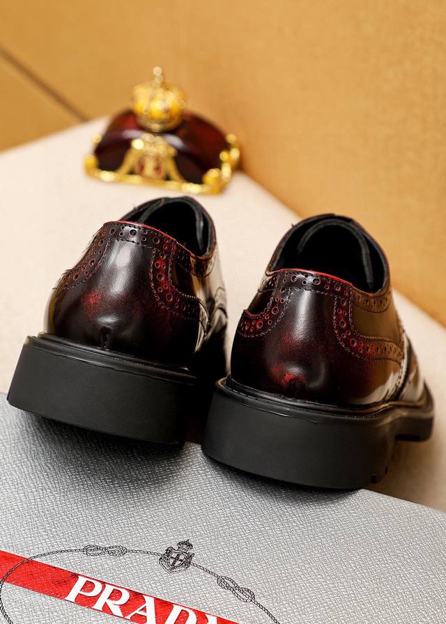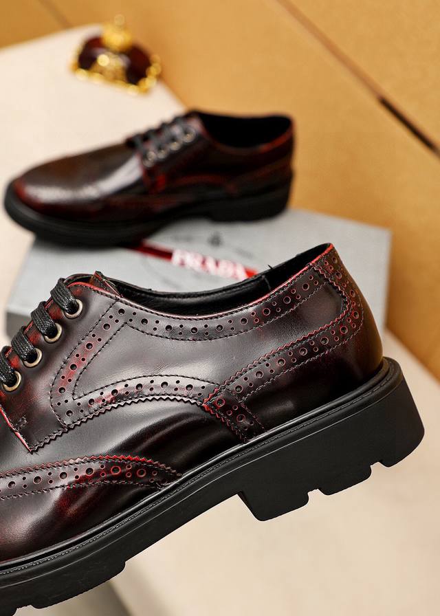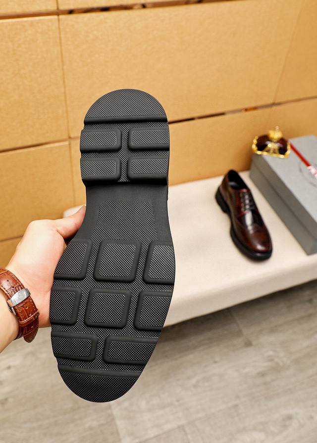 / 商品商标:prada 普拉达 商务皮鞋 正码码数: 38-44 45订制 商品材料:精选 进口头层开边珠牛皮鞋面,进口水染牛皮内里。强烈立体视觉效果,橡胶大底