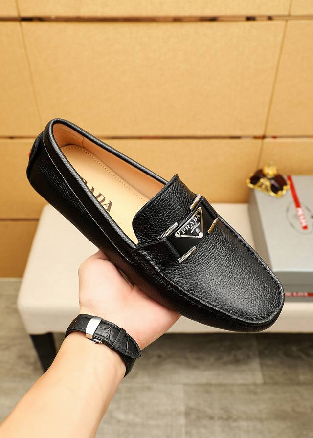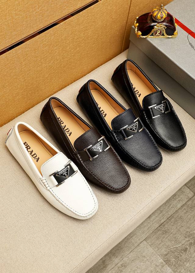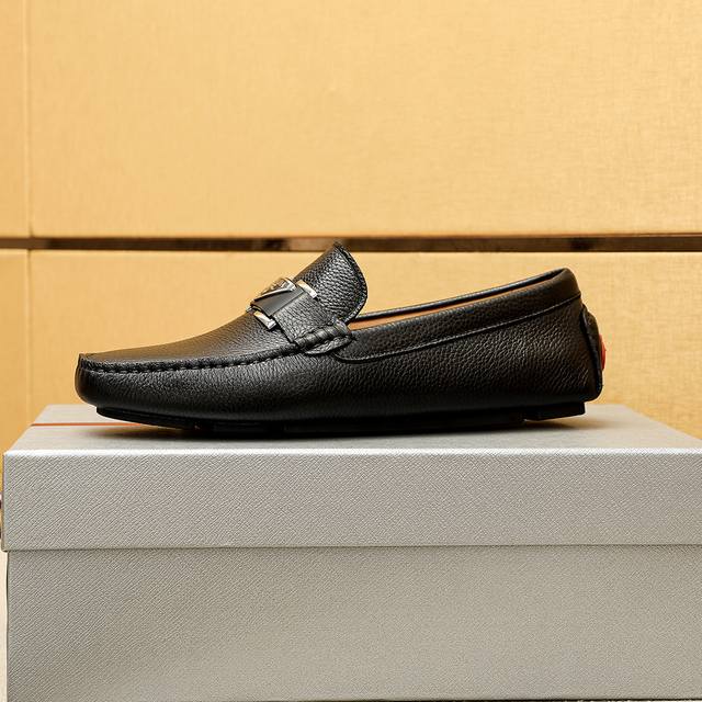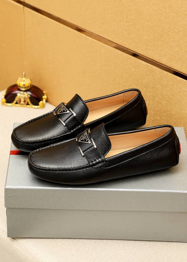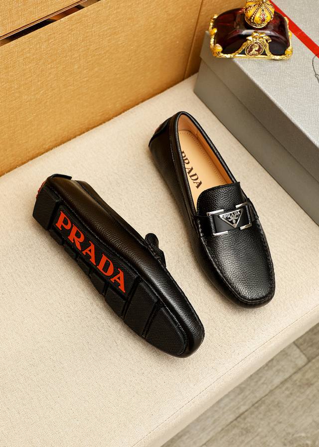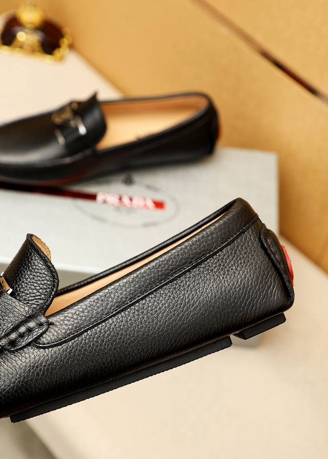 / 商品商标:Prada 普拉达 豆豆鞋 正码码数: 38-44 45.46订制 商品材料:精选 进口头层荔枝纹牛皮鞋面+原版五金扣,进口猪皮内里。强烈立体视觉效果