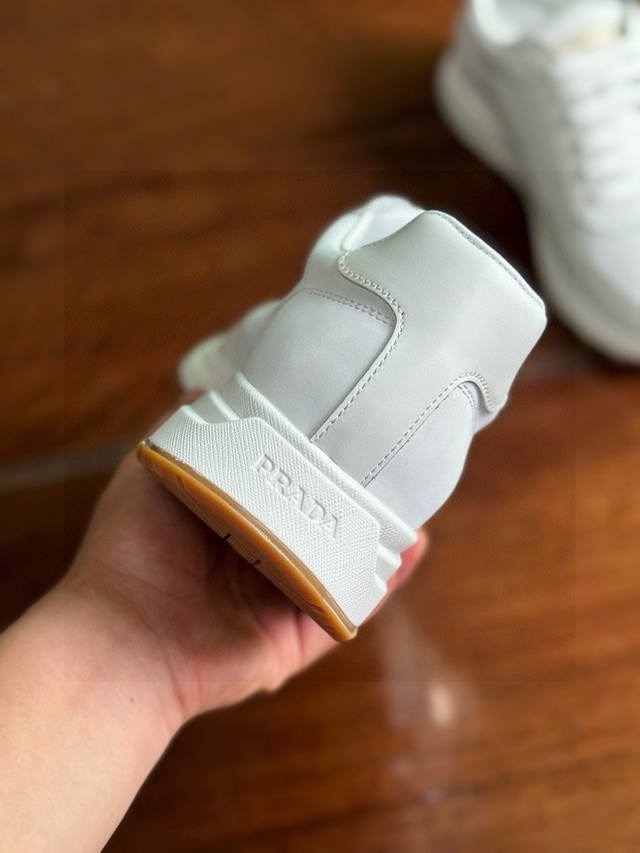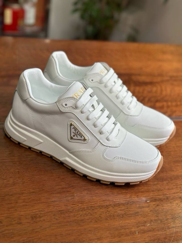 / 实价: pra 普拉达2025春夏新品男士高端运动鞋,这款运动鞋休闲百搭,选用进口牛皮打造,进口羊皮内里,轻质发泡大底,脚感非常舒适,运用柔和简洁的线条勾勒出运