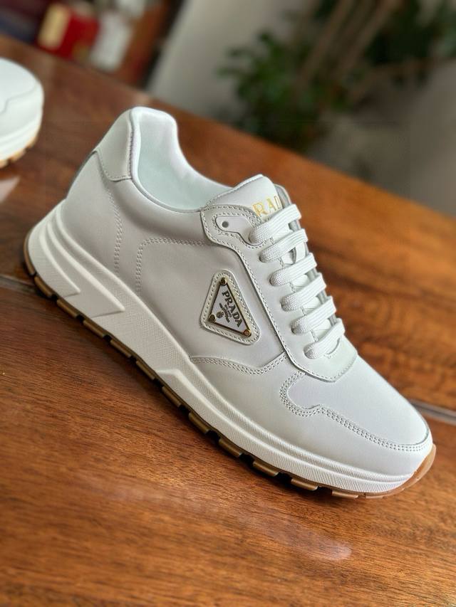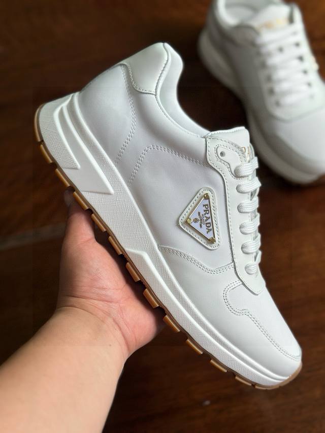 实价: pra 普拉达2025春夏新品男士高端运动鞋,这款运动鞋休闲百搭,选用进口牛皮打造,进口羊皮内里,轻质发泡大底,脚感非常舒适,运用柔和简洁的线条勾勒出运动风廓形。鞋底轻盈而稳固,带有标志性的涂珐琅三角形金属徽标,鞋舌饰有压花效果丝网印花徽标,彰显别具一格的魅力。 DDD Size:38-46 45 46订做 DDD