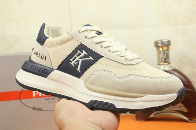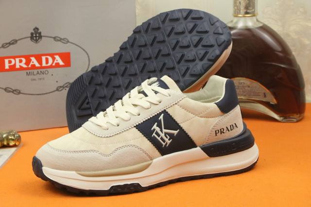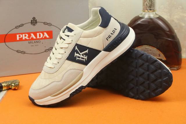 Prad*普拉达 专柜爆款男鞋,官网1:1制作,进口面料拼接,真皮内里 原厂特供原版底,38-45 45订做不退换
