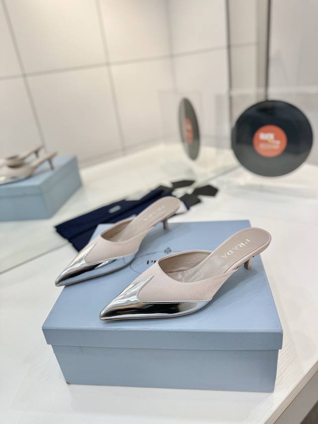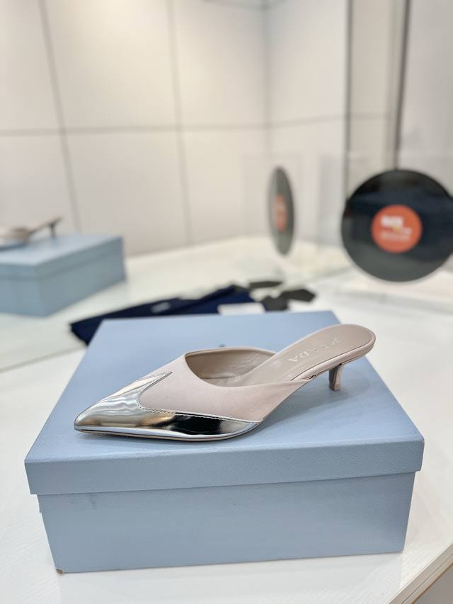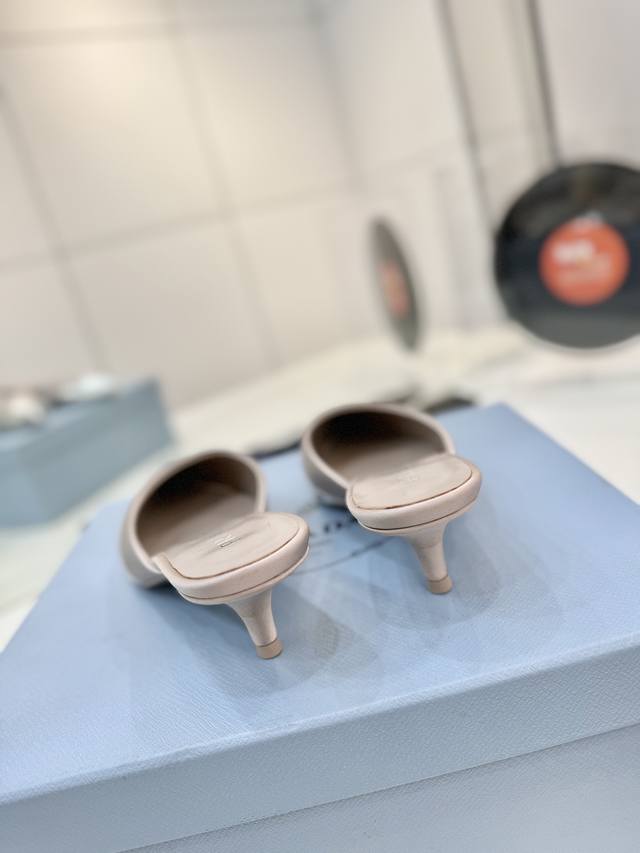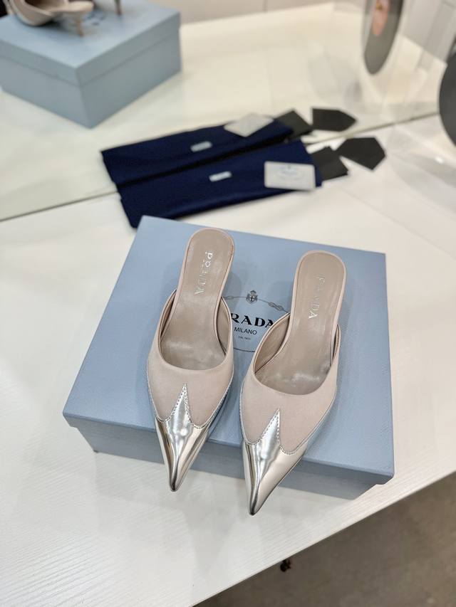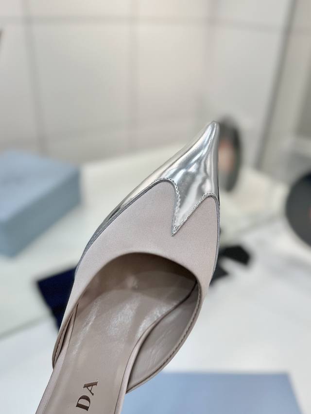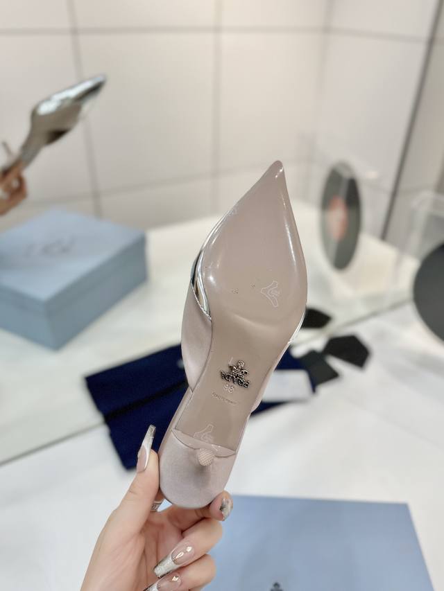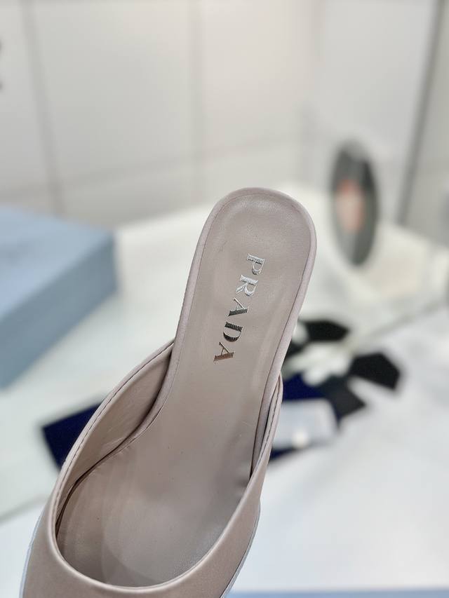 / 工厂P价 普拉达真丝 春夏专柜新品。可萌可甜的高跟拖鞋 性感而不失可爱!上脚绝美的T台走秀明星网红同款 清新风带点贵气的感觉,上脚非常完美。Hk原版购入,1:1
