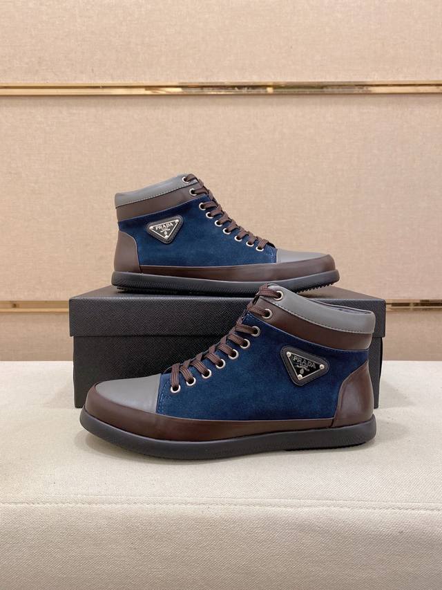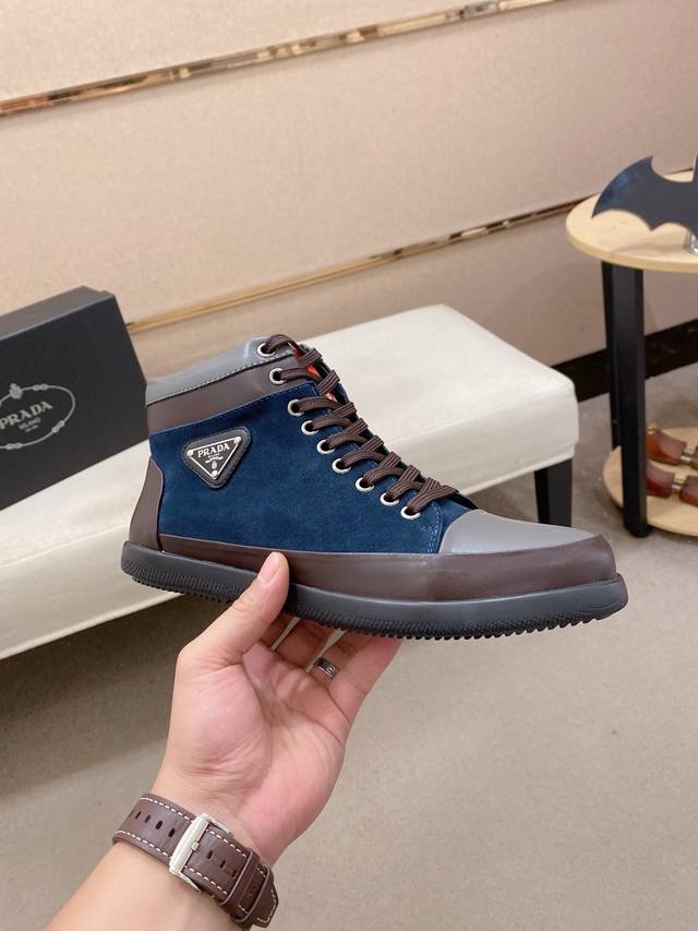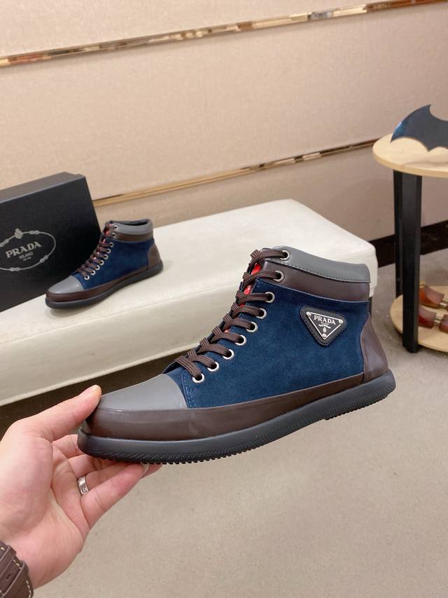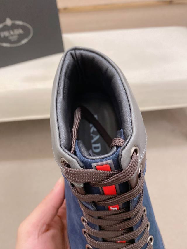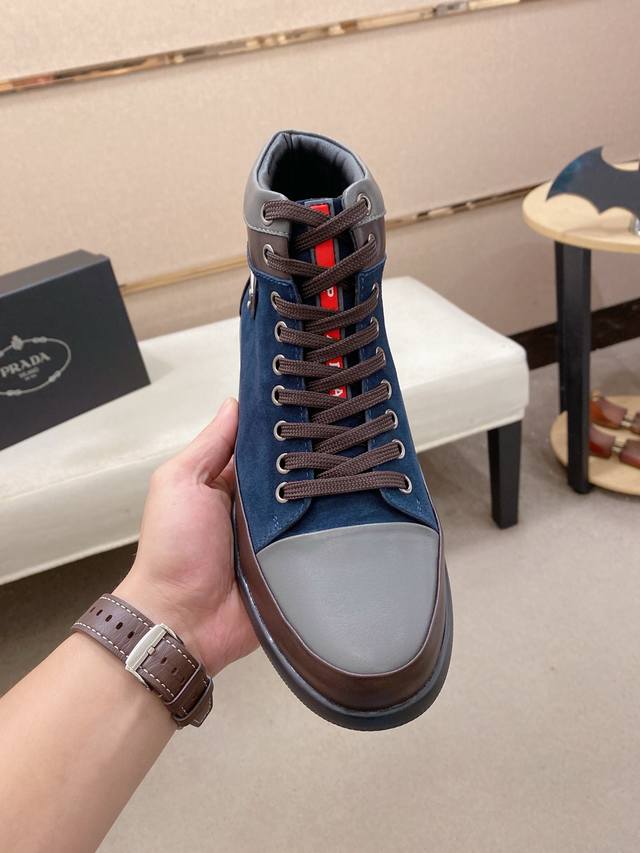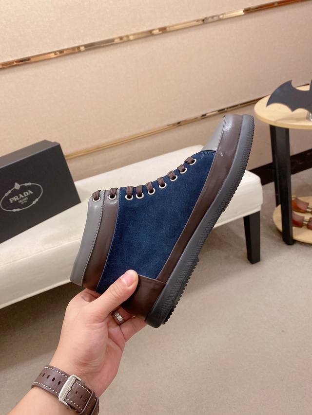 / 工厂P价 普拉达 官网最新款高帮休闲时尚男鞋,爆款版型简洁大气,潮男专属.独有的官网最新品牌元素元素原版装饰,时尚又大方,面料原版牛皮羊皮内里,官网指定耐磨休闲