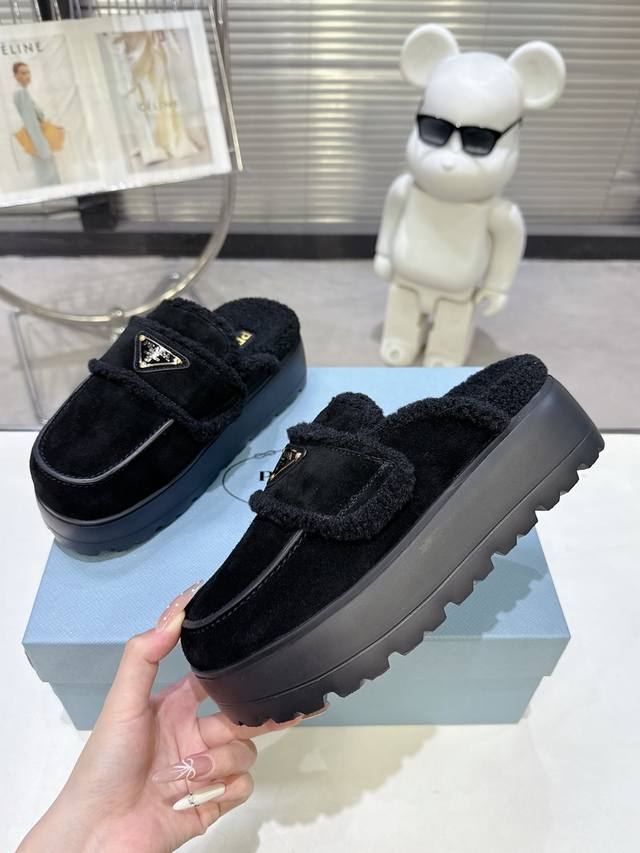 / 工厂P价 男装男鞋 运动原单 普拉达 Parda 爆款早春毛拖鞋,走秀单品,冬季室内,早春室外。该款羊皮毛拖鞋配有橡胶Ip超轻发泡鞋底,软羊革绗缝图案呼应标志性
