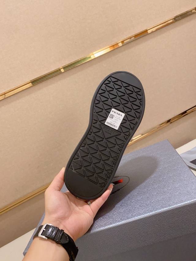 工厂P价 高版本 高品质新款Prada 普拉达 专柜同步上市, 新款男鞋、面料精选头层牛皮,纯手工艺制作而成。内里:全牛皮内里。高端气垫开模防滑橡胶大底,精美线条、简约大气,上脚舒服上挡次、休闲旅游。码数:38一44 可定做45