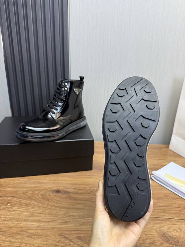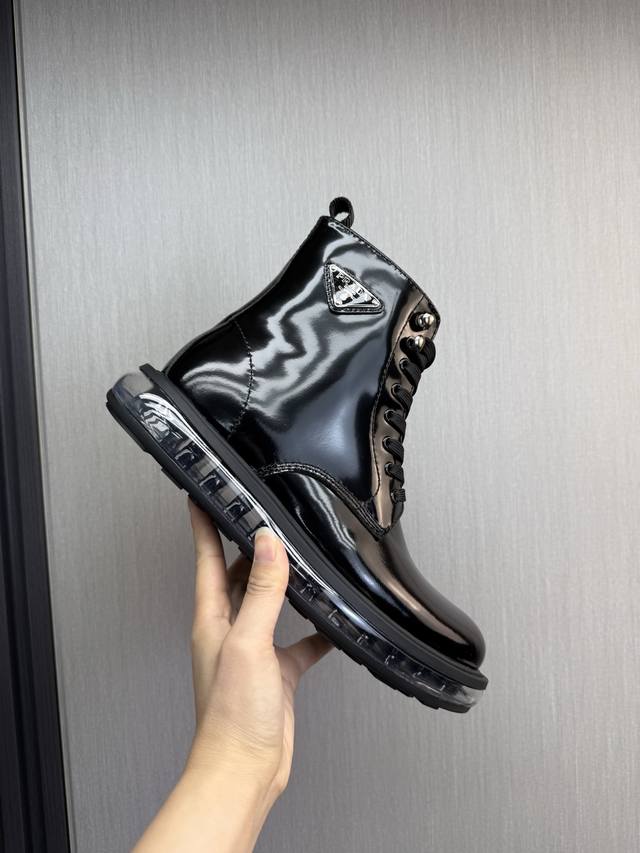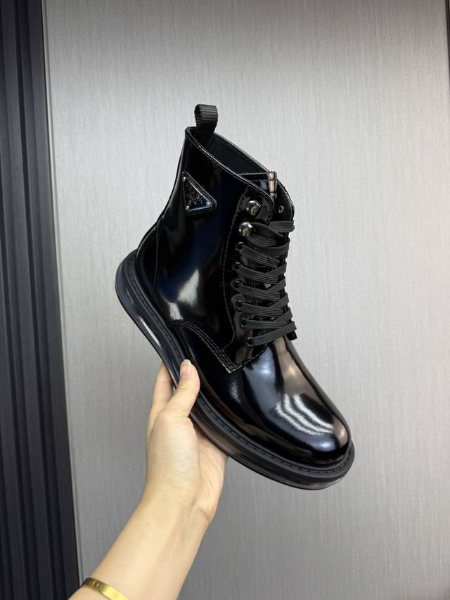 工厂p价 DDD prad* 普拉达.男士爆款气垫短靴 DDD 男士气垫鞋切尔西靴 DDD 采用进口开边珠亮面皮革制成,几何裁剪 进口机车 精密缝合拼接 高精雕花装饰点缀 布洛克经典欧美风格 菱角分明 新颖独特 双侧饰以弹力松紧带加持 后跟织带鞋提环 上脚稳固舒适 DDD 内里全小牛皮打造 脚感更舒适 做工精细 原厂超柔韧 3.5Cm 厚底气垫大底 橡胶底层包裹 舒适度超高 防滑性能极好 一脚蹬套穿式 适应性更强 做工精细细致 鞋型棱角清晰 秋冬穿搭的点睛之笔 原包装发售! DDD 标准皮鞋码数:39~4