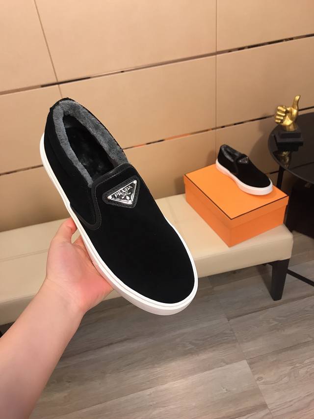工厂p价 prada新款 普拉达最 新款精心打造,引爆全场!不断创新的国际品牌 此款男士休闲鞋,原版版本,鞋面磨砂皮面材质,保暖绒里,橡胶防滑大底,透气舒适以质量说话码数:38-44 DDD