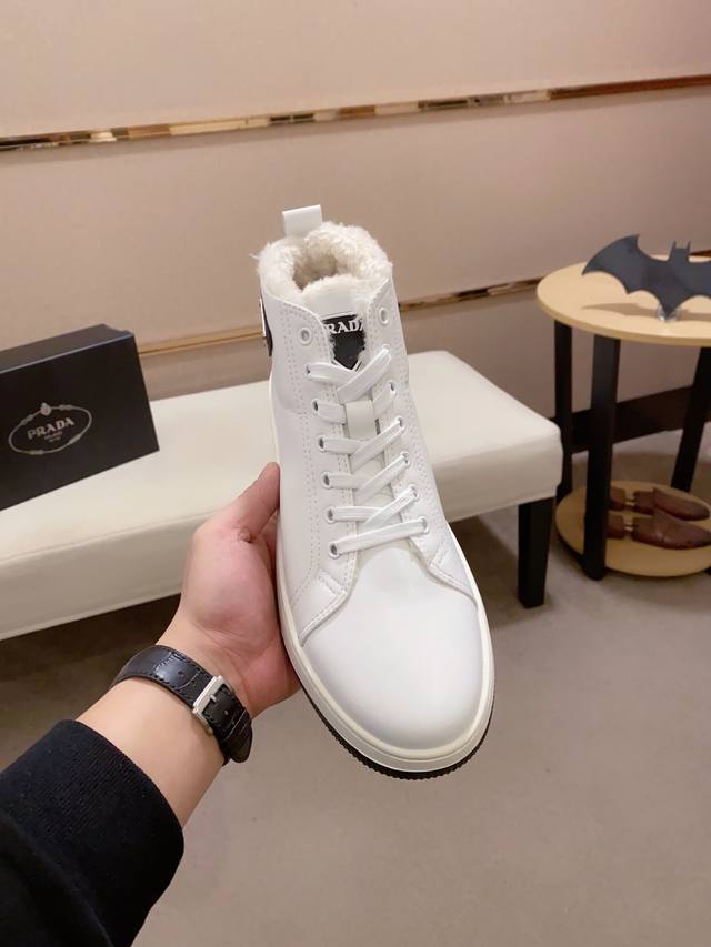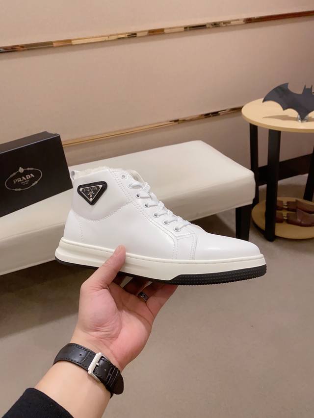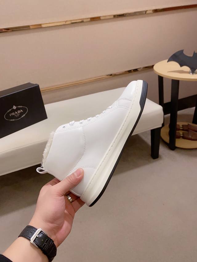 工厂p价 prada~普拉达 潮流高帮新款上市 官网同款 专柜品质 原版搭配 精选头层小牛皮面料。舒适透气绒毛内里 做工精细 用料上层 100%纯牛皮打造 原版楦型 上脚舒适 鞋码38到44 DDD