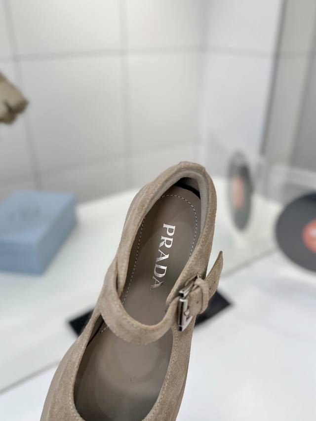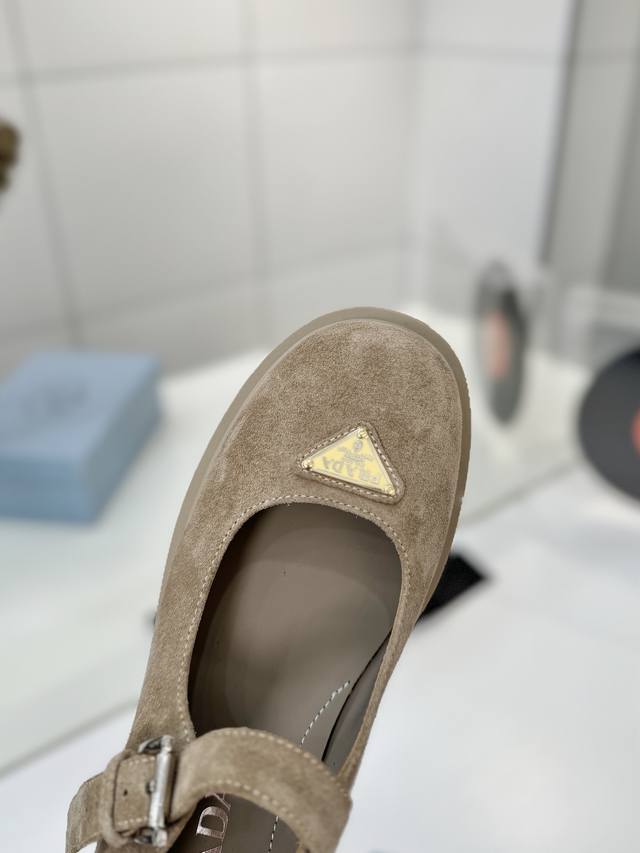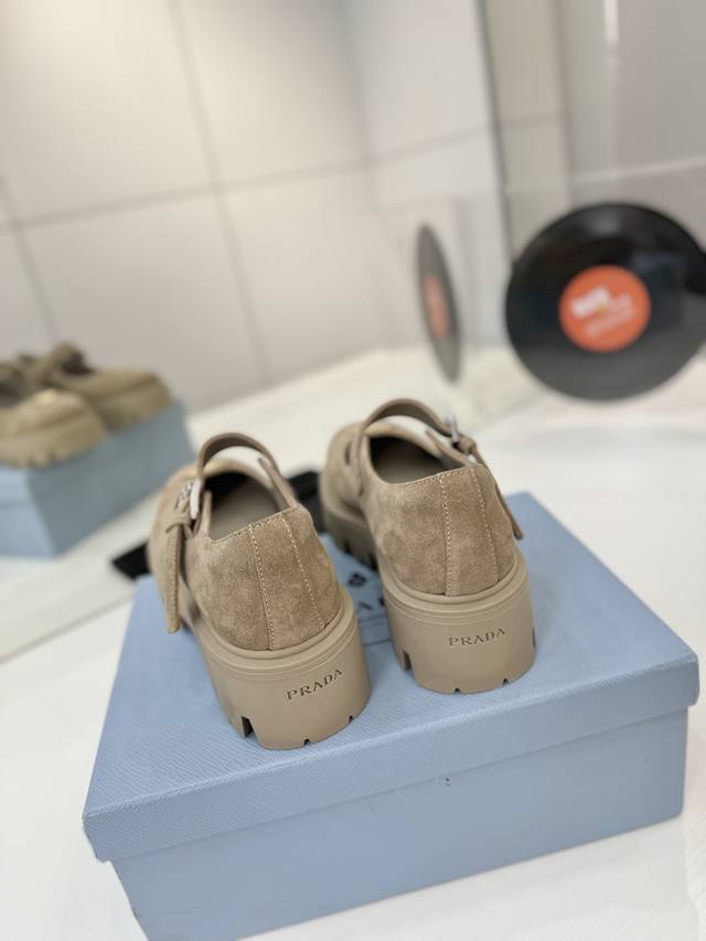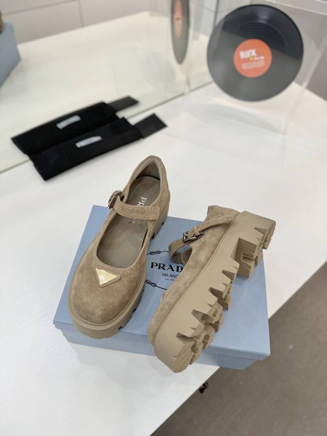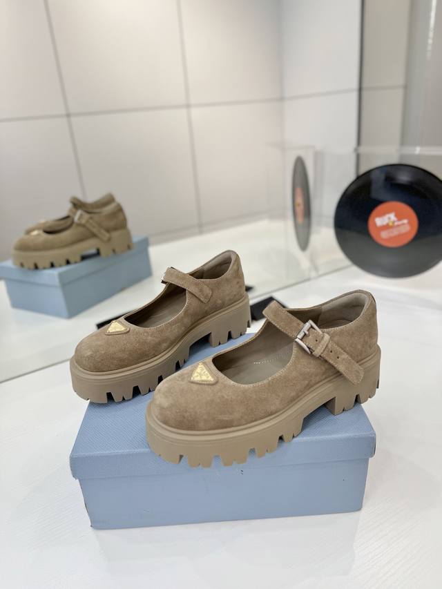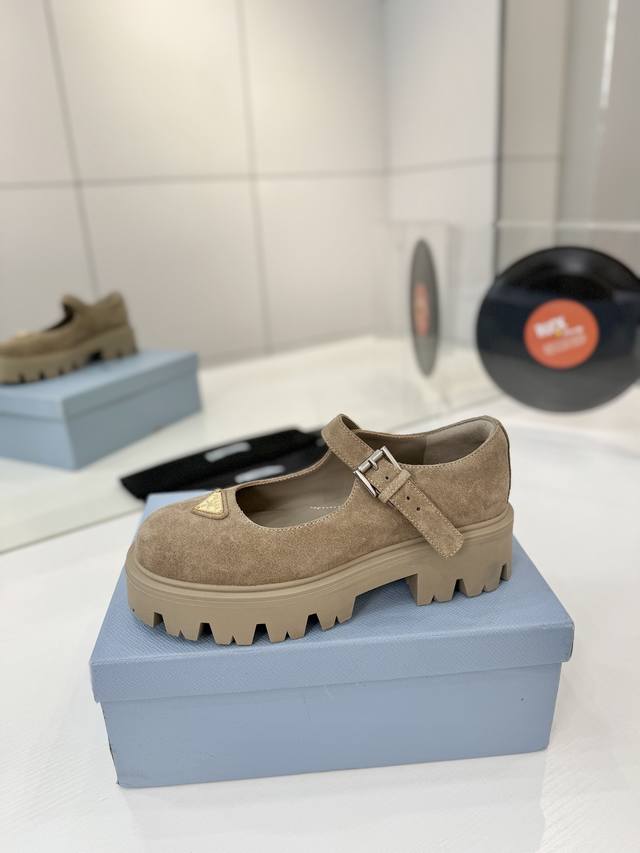 / 工厂P价 Prada玛丽珍鞋 三角扣厚底小皮鞋乐福鞋,全套齐 这款鞋鞋面配有饰带和金属搭扣 涂珐琅金属三角形徽标,复古时髦前卫的轮齿厚底鞋底搭配牛皮鞋面让整双鞋