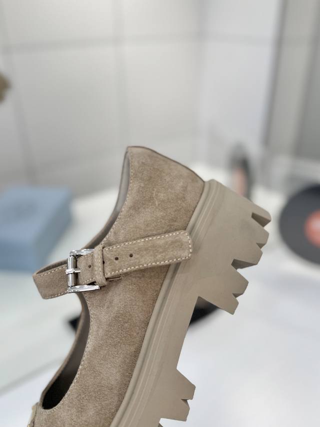 工厂P价 Prada玛丽珍鞋 三角扣厚底小皮鞋乐福鞋,全套齐 这款鞋鞋面配有饰带和金属搭扣 涂珐琅金属三角形徽标,复古时髦前卫的轮齿厚底鞋底搭配牛皮鞋面让整双鞋