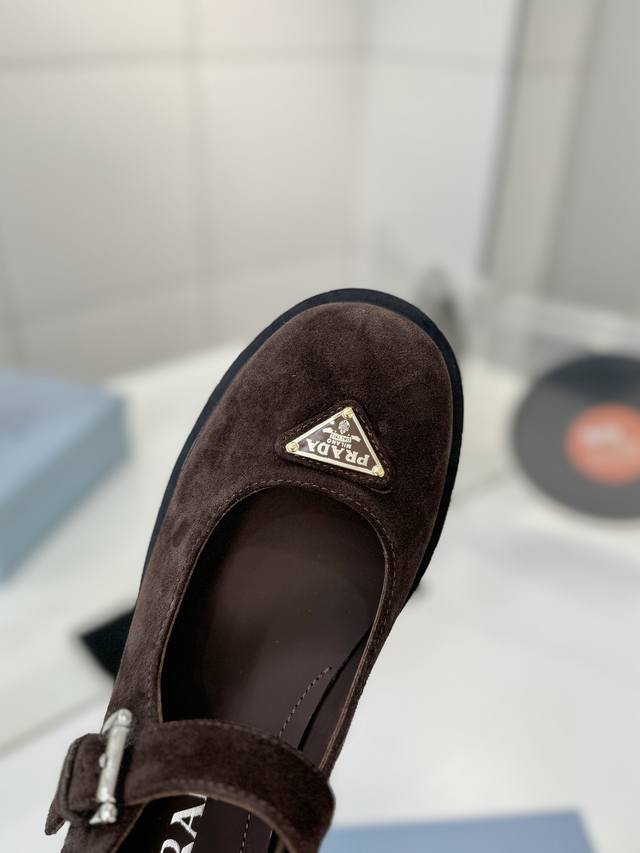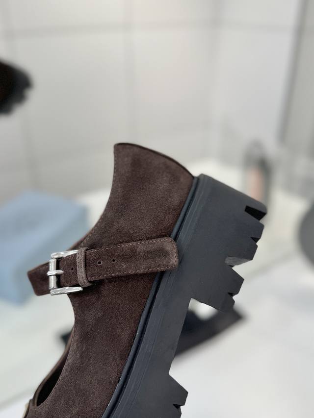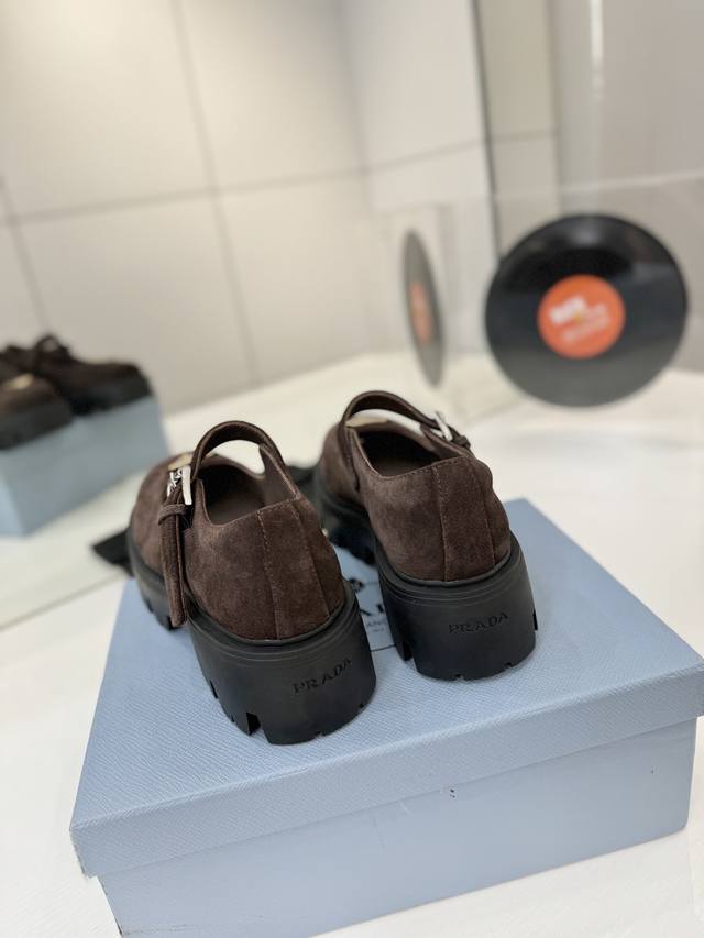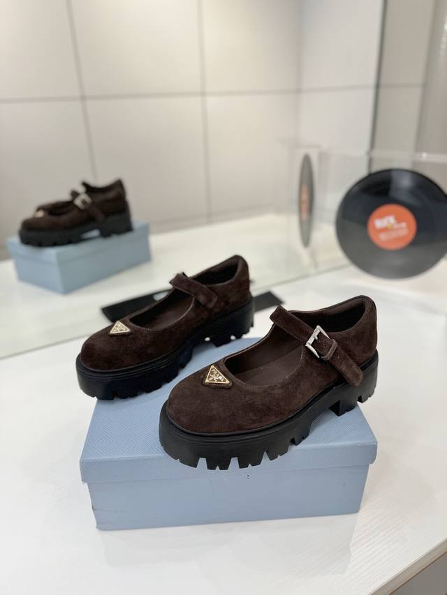 / 工厂P价 Prada玛丽珍鞋 三角扣厚底小皮鞋乐福鞋,全套齐 这款鞋鞋面配有饰带和金属搭扣 涂珐琅金属三角形徽标,复古时髦前卫的轮齿厚底鞋底搭配牛皮鞋面让整双鞋