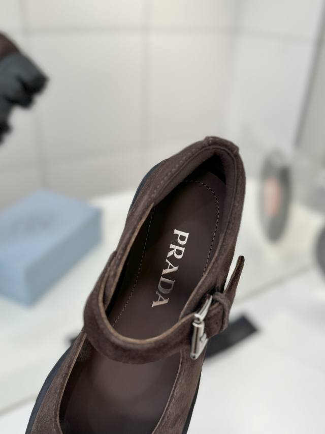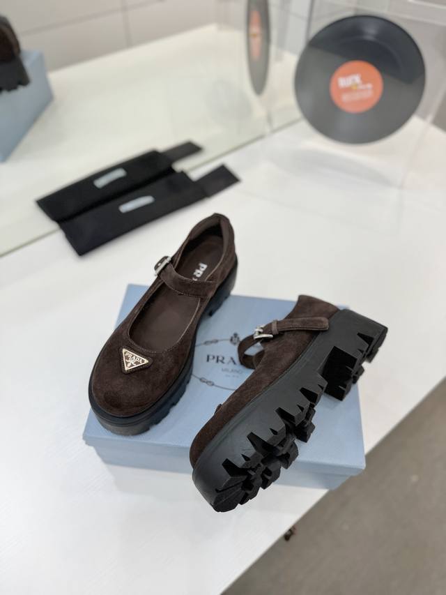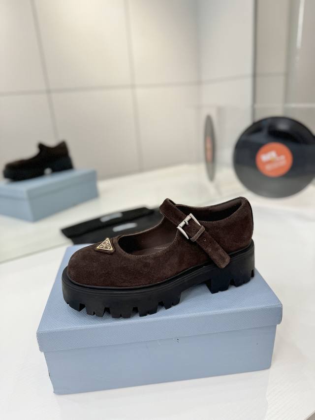工厂P价 Prada玛丽珍鞋 三角扣厚底小皮鞋乐福鞋,全套齐 这款鞋鞋面配有饰带和金属搭扣 涂珐琅金属三角形徽标,复古时髦前卫的轮齿厚底鞋底搭配牛皮鞋面让整双鞋