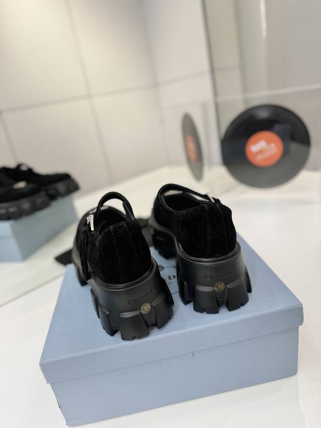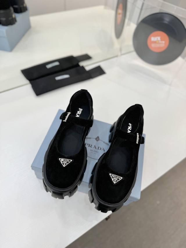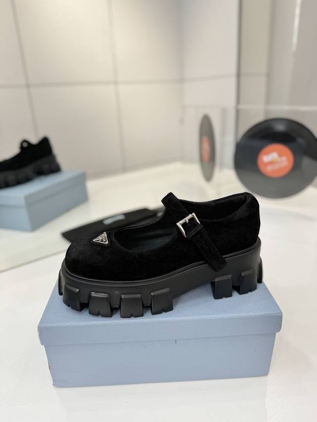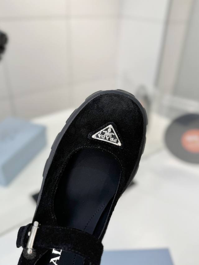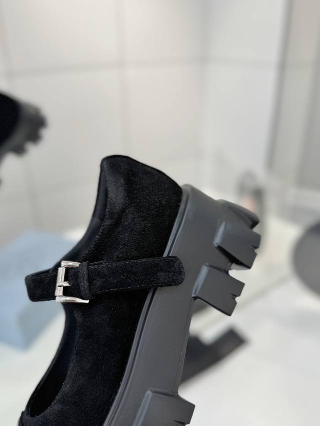 工厂P价 Prada玛丽珍鞋 三角扣厚底小皮鞋乐福鞋,全套齐 这款鞋鞋面配有饰带和金属搭扣 涂珐琅金属三角形徽标,复古时髦前卫的轮齿厚底鞋底搭配牛皮鞋面让整双鞋