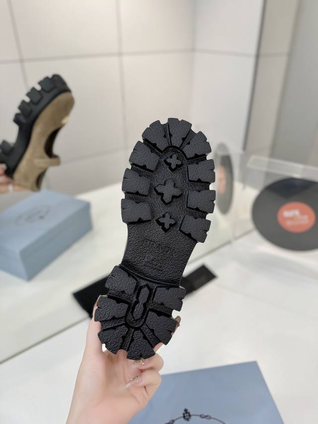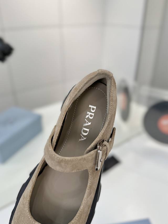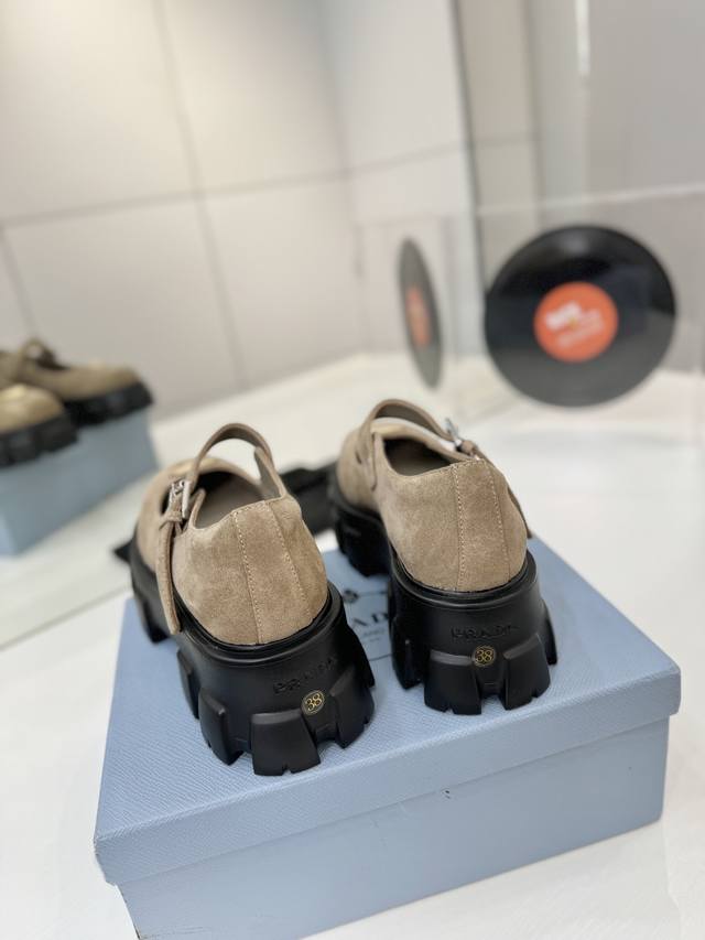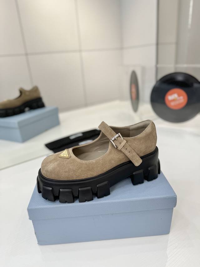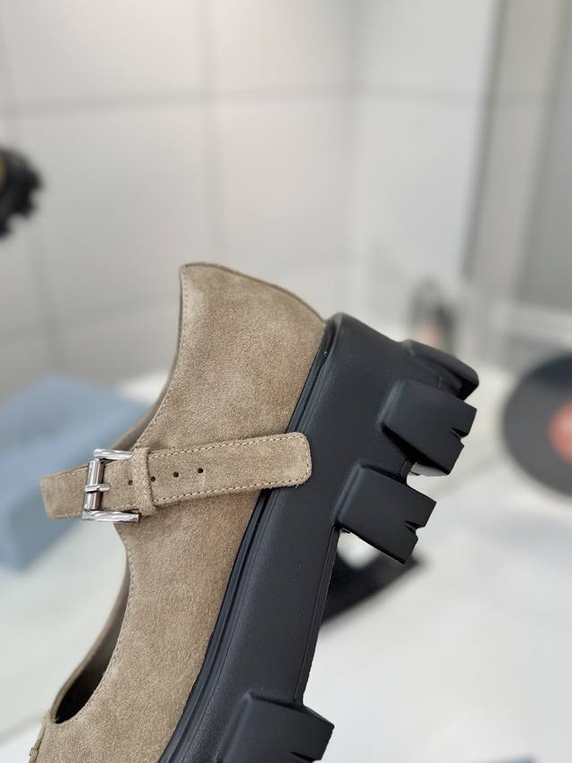 工厂P价 Prada玛丽珍鞋 三角扣厚底小皮鞋乐福鞋,全套齐 这款鞋鞋面配有饰带和金属搭扣 涂珐琅金属三角形徽标,复古时髦前卫的轮齿厚底鞋底搭配牛皮鞋面让整双鞋