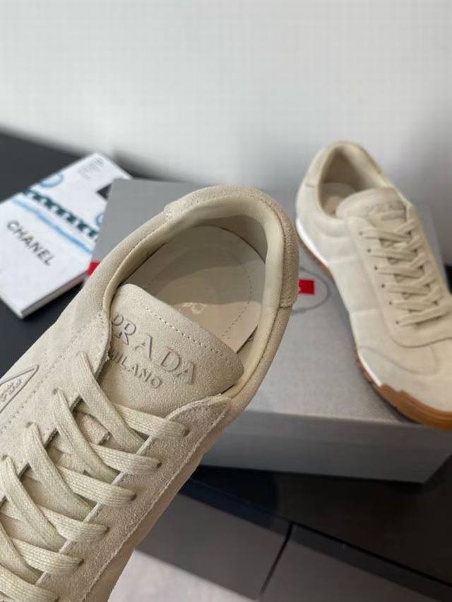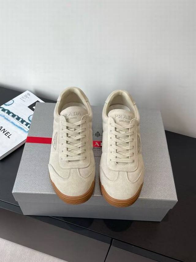 / 工厂p价 prada 普拉达 情侣款 25Ss秋夏新款 德训鞋 休闲鞋 鞋面:原版进口牛皮 丝光牛反绒 内里垫脚羊皮 原版定制橡胶大底 码数:男女同款:35-4