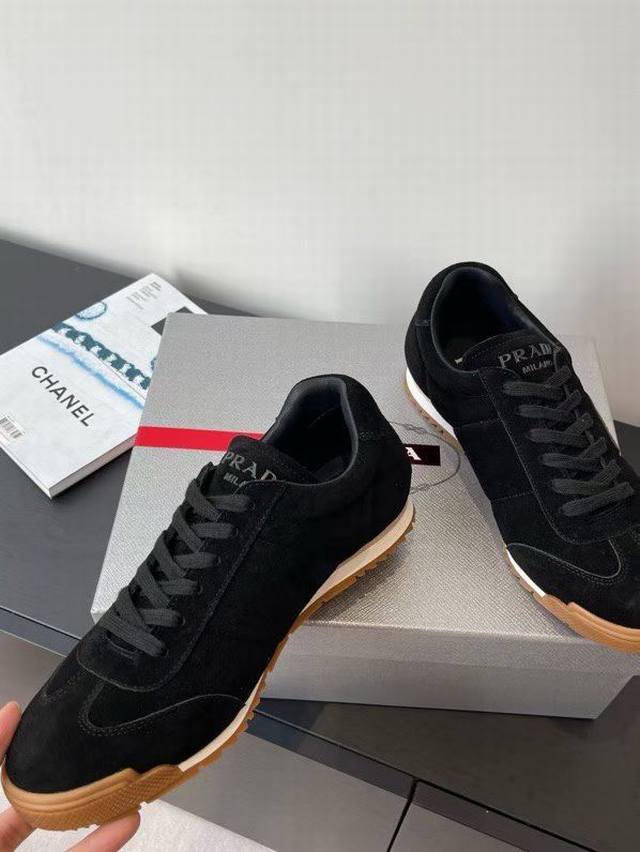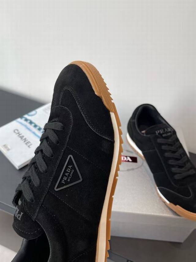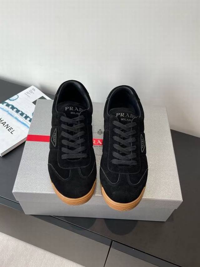 / 工厂p价 prada 普拉达 情侣款 25Ss秋夏新款 德训鞋 休闲鞋 鞋面:原版进口牛皮 丝光牛反绒 内里垫脚羊皮 原版定制橡胶大底 码数:男女同款:35-4