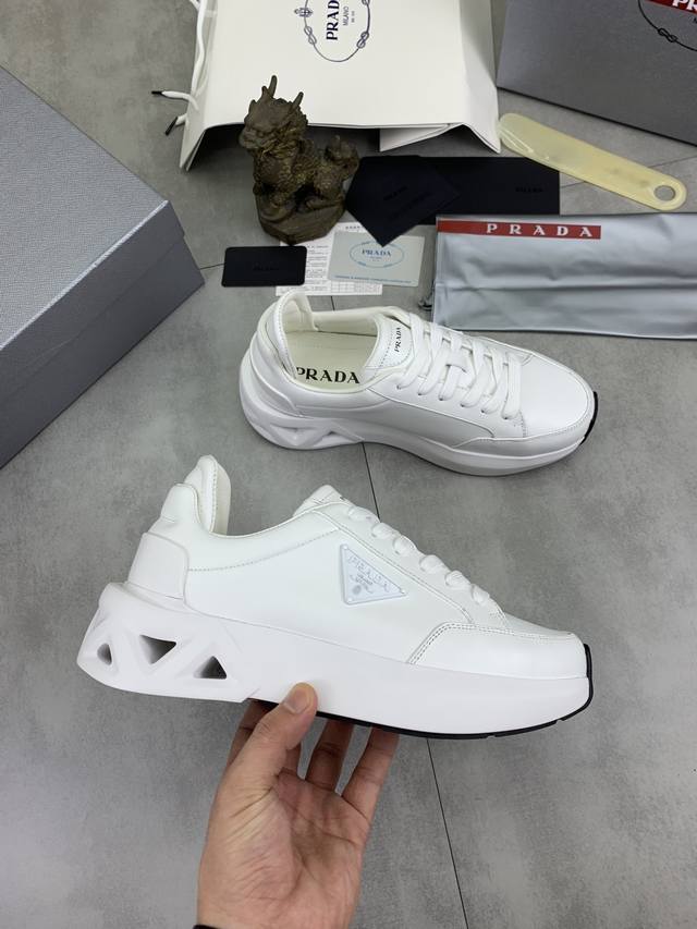工厂P价P 实价 官网爆款上市, 潮牌 普拉达Prada 主推爆款,前卫百搭时尚男鞋私版开模,牛皮面拼接1:1..时尚干脆、原版进口牛皮内里牛皮垫脚;大气个性更潮更抢眼更追求档次,它将颠覆旧念,与您共度时尚潮人必备 高大上的舒适大低,高端品质做工。码数:38-45 黑色 白色可选。