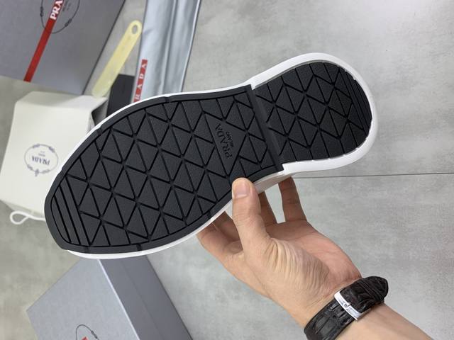 Prada 经典原单版本 普拉达;顶级代购男士最新专柜同步发售,意大利进口原版飞织面料做工考究 意大利进口真皮鞋垫里...