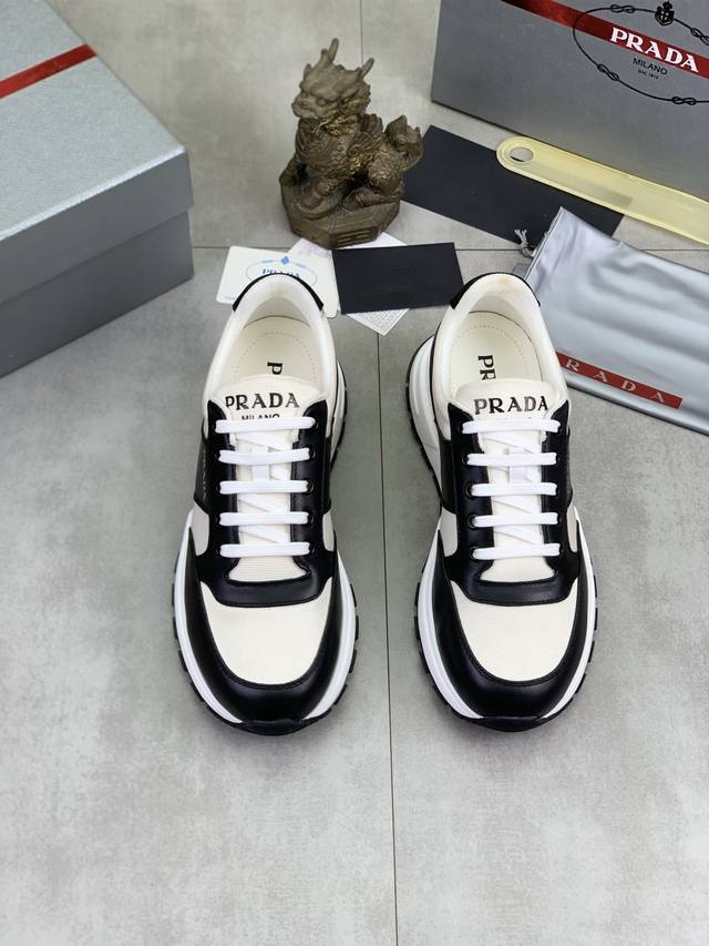 Prad*普拉达2025春夏新品男士高端运动鞋,这款运动鞋休闲百搭,选用进口牛皮打造,进口羊皮内里,轻质发泡大底,脚感非常舒...