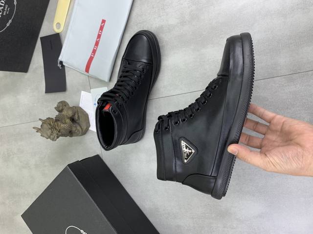 / 工厂P价P 实价 新款Prada 普拉达 高帮同步经典款上市, 新款男鞋、面料精选原版进口小牛皮。头层进口猪皮内里。原版牛里垫脚!原版开模防滑Pu大底,精美线条