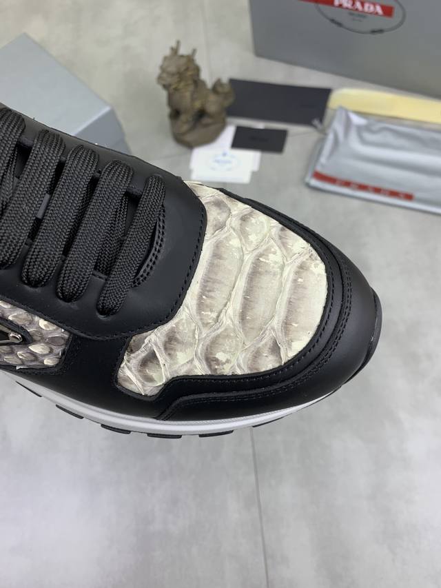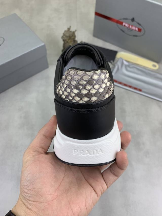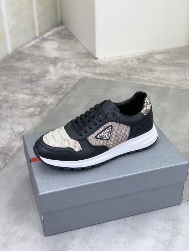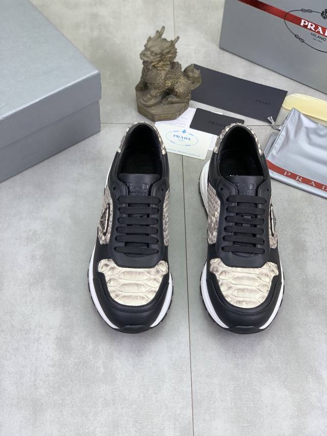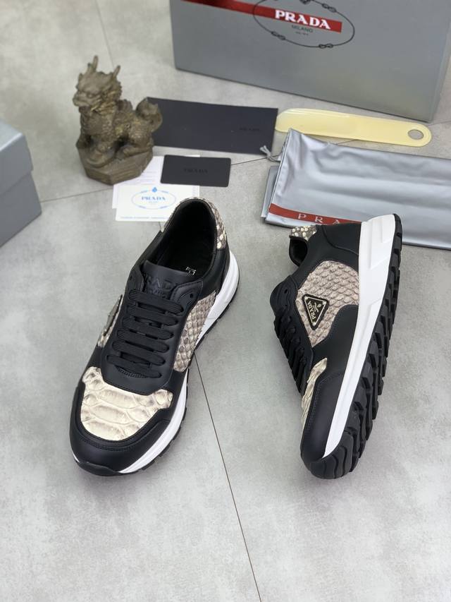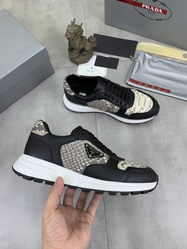 工厂p价p 实价 顶级品质 官网新款爆款上市,百年不过时, 潮牌 普拉达prada 主推爆款,前卫百搭时尚男鞋私版开模,牛皮面拼接1:1油边处理..时尚干脆、原版进口牛皮配蟒蛇皮,牛皮内里牛皮垫脚;大气个性更潮更抢眼更追求档次,它将颠覆旧念,与您共度时尚潮人必备 高端舒适大低,高端品质做工。码数:38-44 多款颜色可选。全套包装 DDD