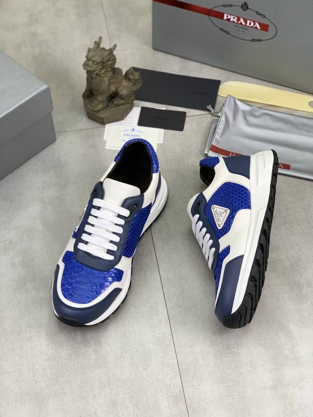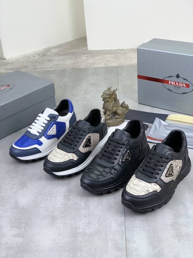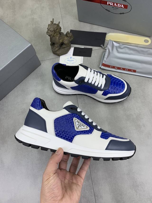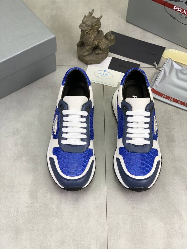 工厂p价p 实价 顶级品质 官网新款爆款上市,百年不过时, 潮牌 普拉达prada 主推爆款,前卫百搭时尚男鞋私版开模,牛皮面拼接1:1油边处理..时尚干脆、原版进口牛皮配蟒蛇皮,牛皮内里牛皮垫脚;大气个性更潮更抢眼更追求档次,它将颠覆旧念,与您共度时尚潮人必备 高端舒适大低,高端品质做工。码数:38-44 多款颜色可选。全套包装 DDD