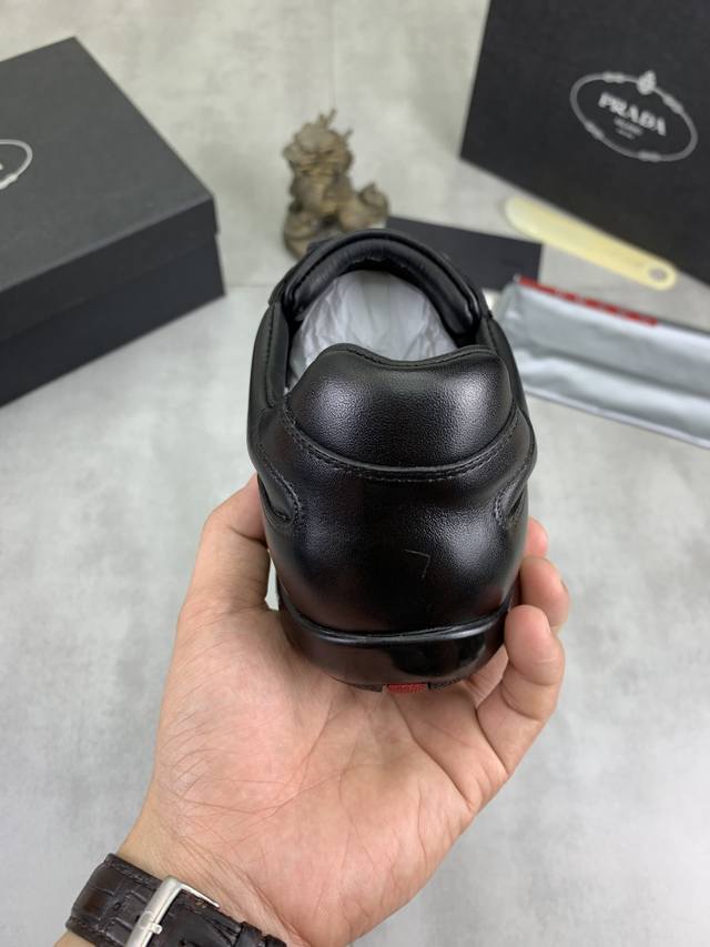 工厂P价P 实价 顶级品质 官网经典爆款上市,百年不过时, 潮牌 普拉达Prada 主推爆款,前卫百搭时尚男鞋私版开模,牛皮面拼接1:1油边处理..时尚干脆、原版进口牛皮内里牛皮垫脚;大气个性更潮更抢眼更追求档次,它将颠覆旧念,与您共度时尚潮人必备 高端舒适大低,高端品质做工。码数:38-44 黑色可选。全套包装