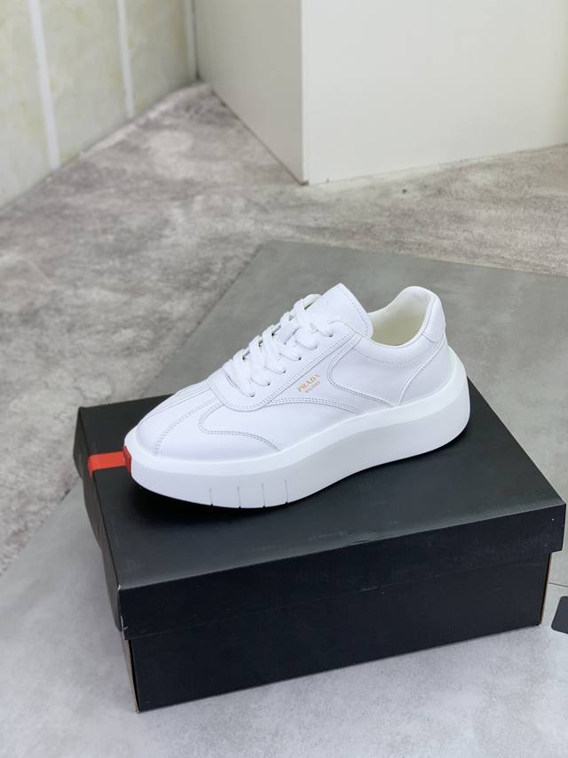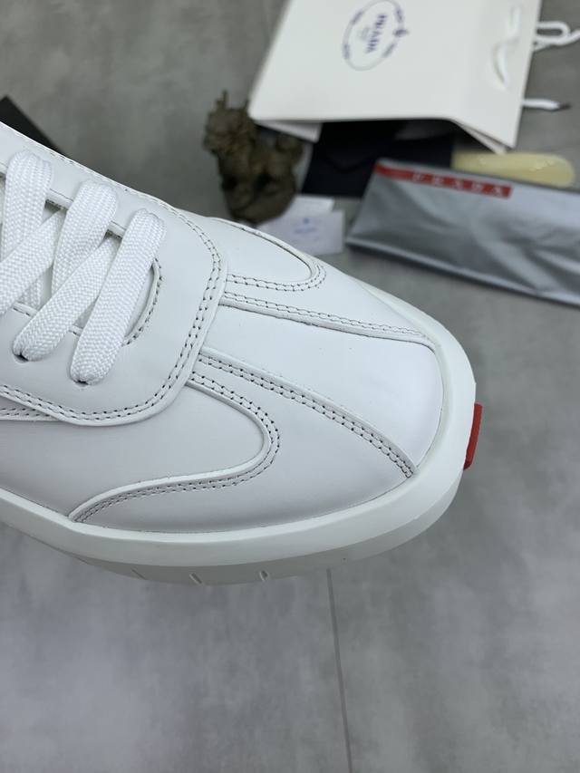 独家首发 普拉达 独特现代风运动鞋。专柜代购休闲鞋 意大利进口原版皮包底,猪里 拒绝脱色磨脚...