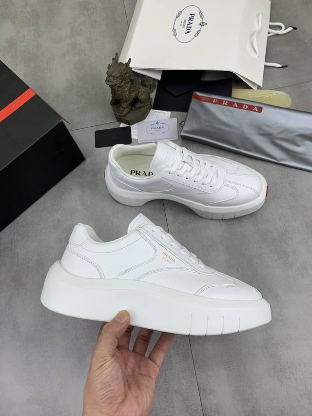 工厂p价p 实价 顶级版本 官网爆款上市, 潮牌 普拉达prada 主推爆款,前卫百搭时尚男鞋私版开模,牛皮面拼接1:1..时尚干脆、原版进口牛皮内里牛皮垫脚;大气个性更潮更抢眼更追求档次,它将颠覆旧念,与您共度时尚潮人必备 高大上的舒适大低,高端品质做工。官网新款高端大底 码数:38-45 黑色 白色可选。 DDD