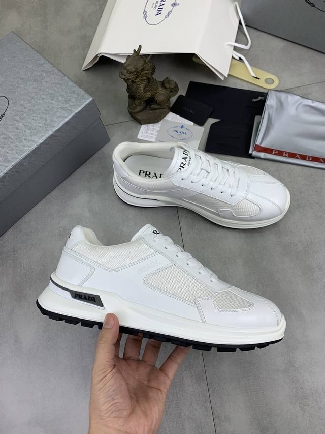 出厂价Pp: Prada经典男士系带休闲鞋|进口牛皮鞋面|鞋面缝线层次设计感...