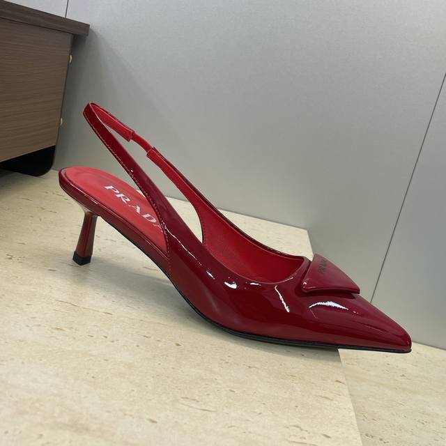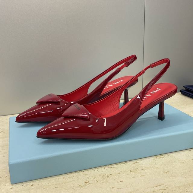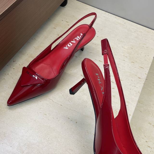 工厂P价P DDD Prada 2026早春走秀新款高跟尖头后空女鞋 普拉达标志性字母Logo三角标徽章扣果冻色细跟拼色凉鞋 DDD 材质:鞋面进口开边珠小牛皮