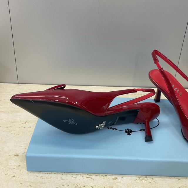 / 工厂P价P DDD Prada 2026早春走秀新款高跟尖头后空女鞋 普拉达标志性字母Logo三角标徽章扣果冻色细跟拼色凉鞋 DDD 材质:鞋面进口开边珠小牛皮