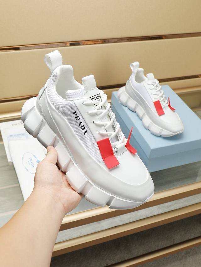 新款: 厂价 普拉达Prada* 最新爆款休闲鞋,顶端品牌 奢侈~代购,顶级~质量。 鞋面選用进口透气织网面料材质透气运动垫脚...