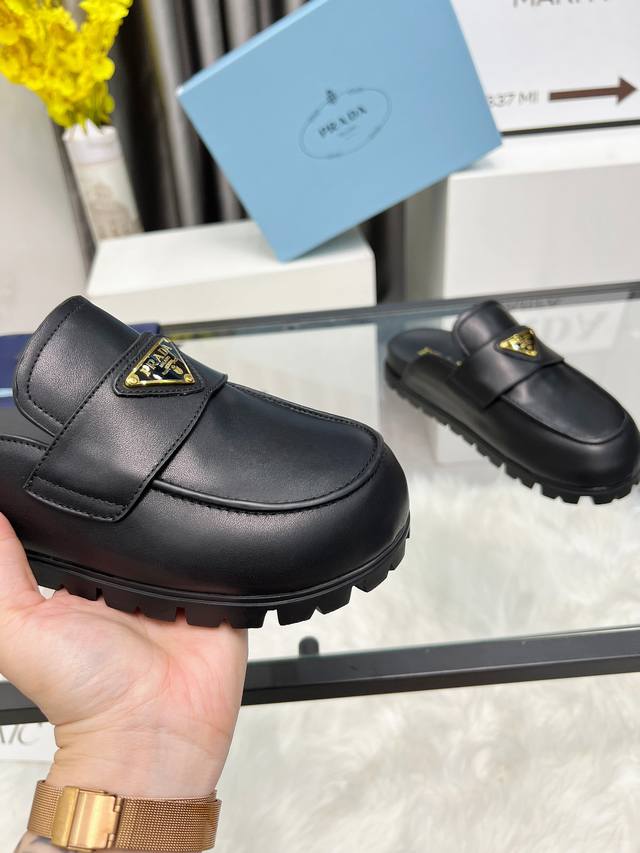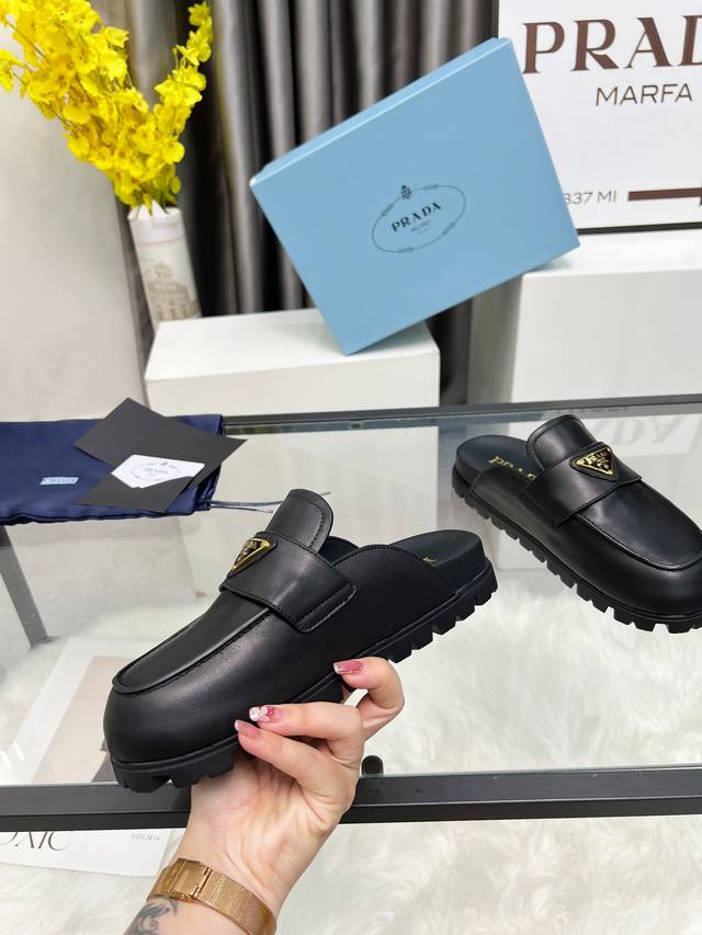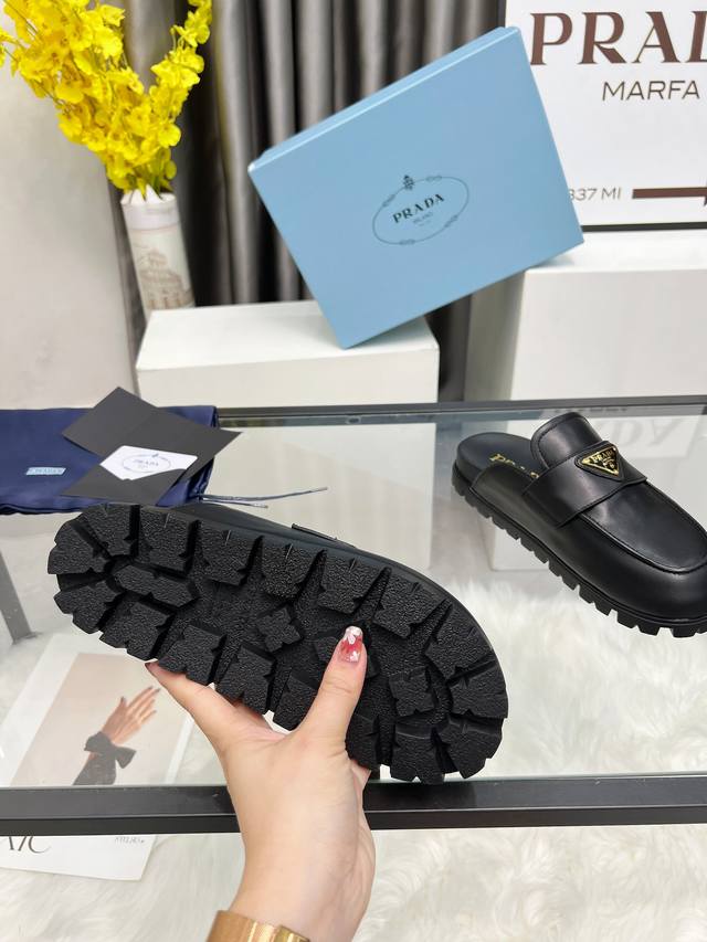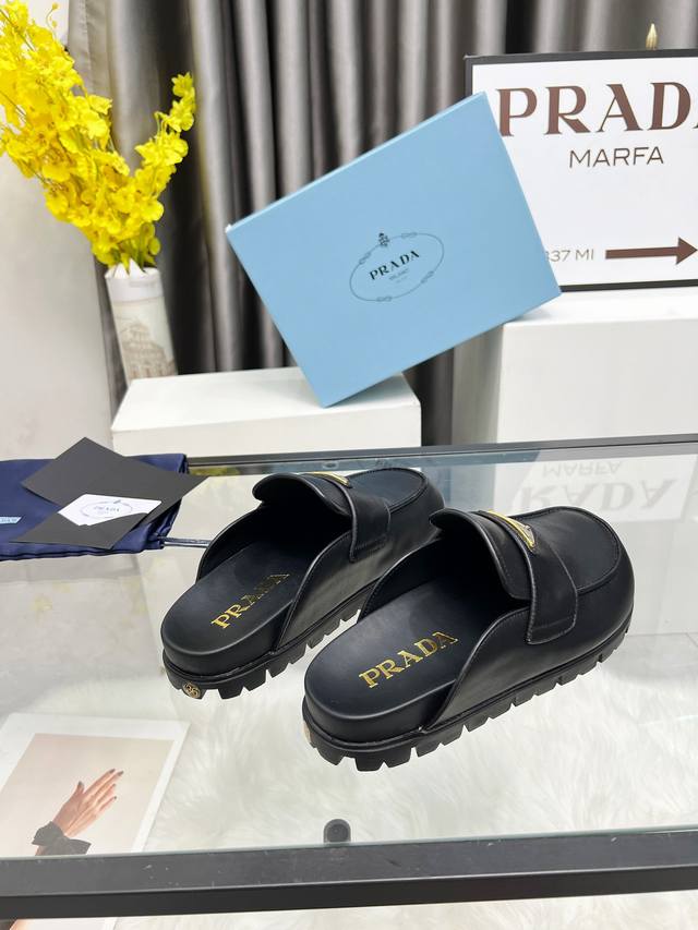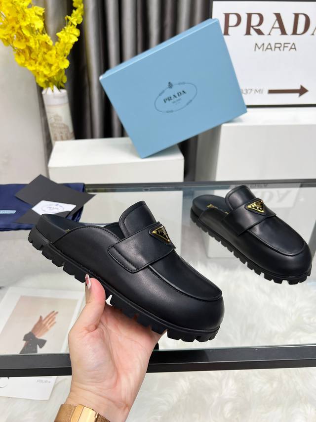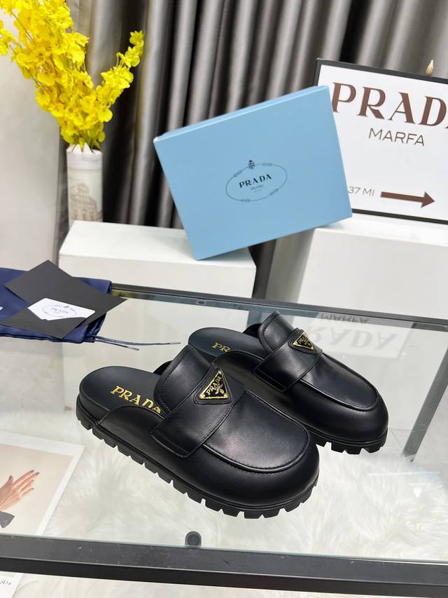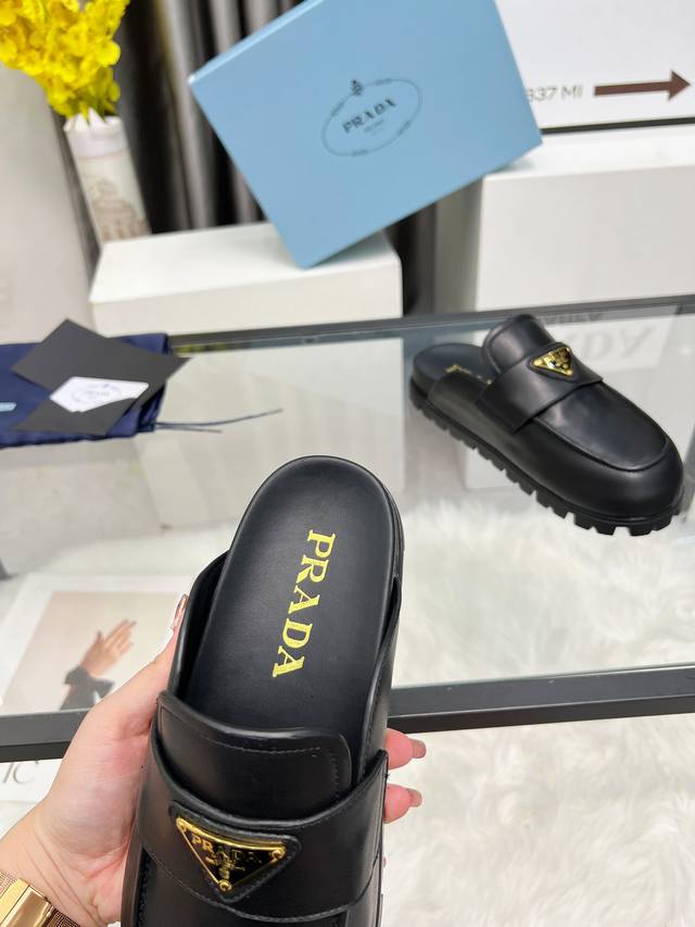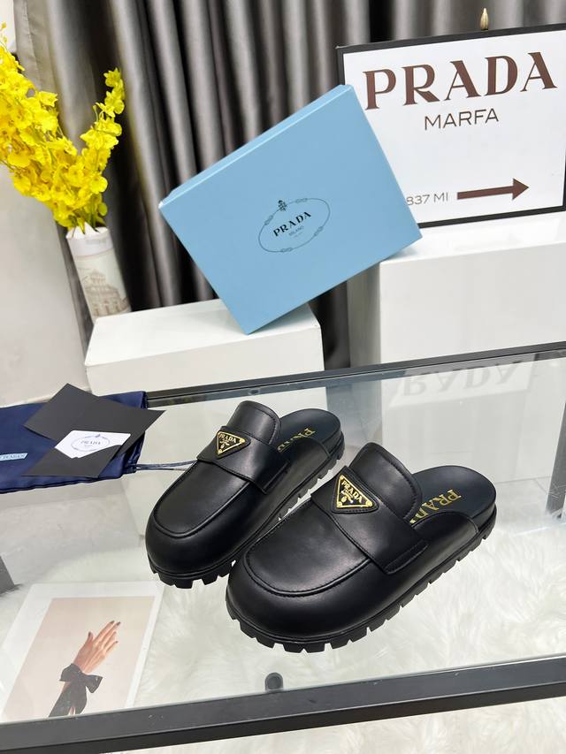 Prada2025 普拉达包头拖鞋 Prada 25Ss 新款春夏 现代风格的线条和原始的建筑体量定义了这些具有复杂魅力...