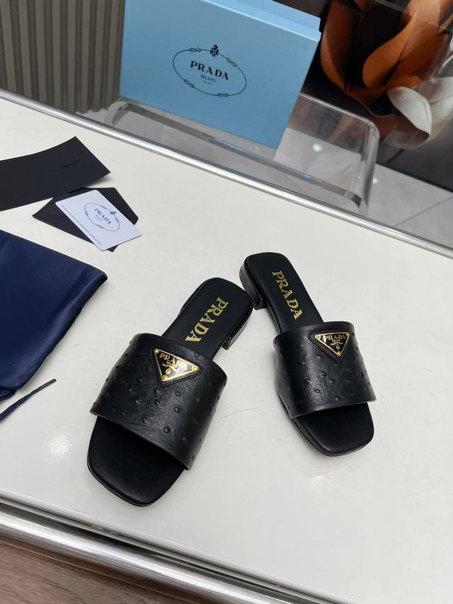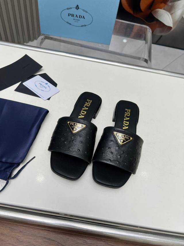 市场顶级版Prada 普拉达 Ss平底凉拖, 面料 原版鸵鸟纹牛皮 羊皮内里,原版意大利真皮大底,跟高:2Cm 码数:35一42 41-42定 5色供应中