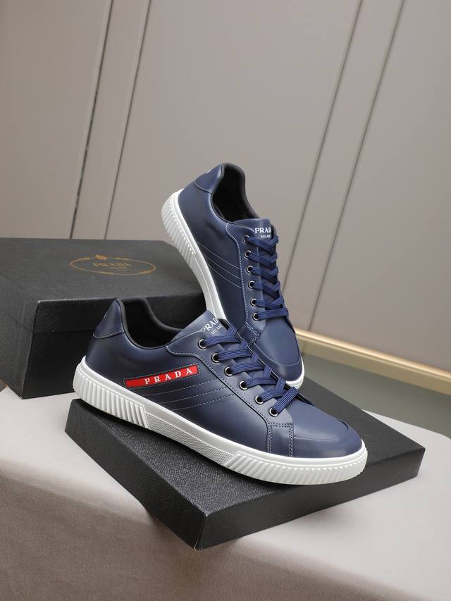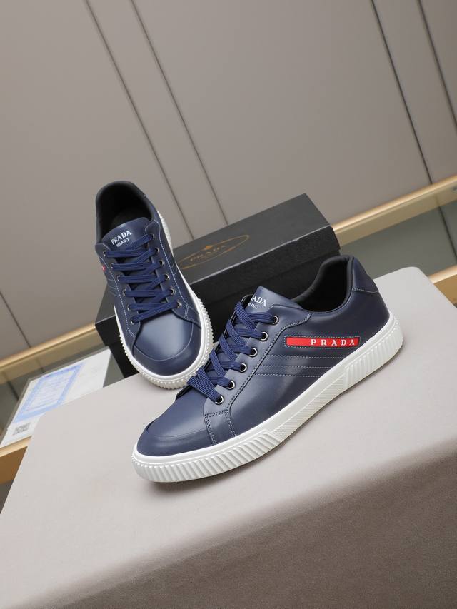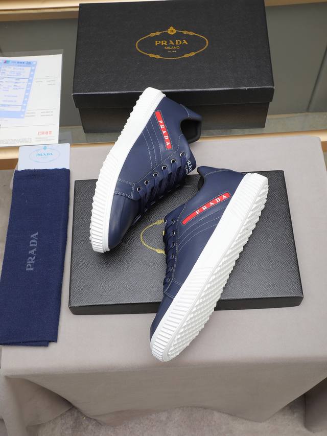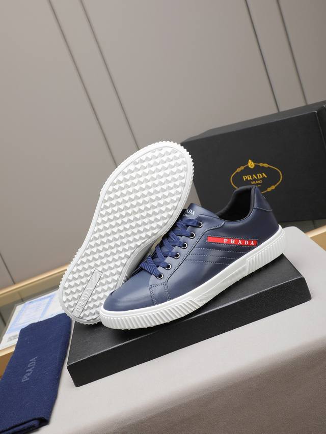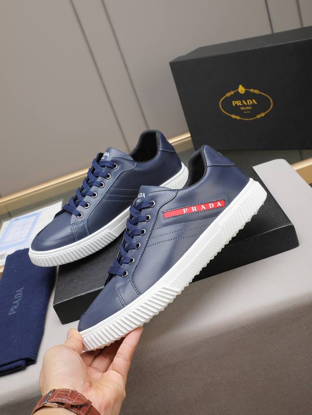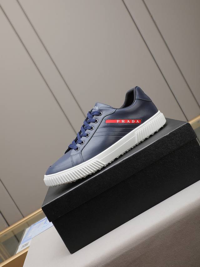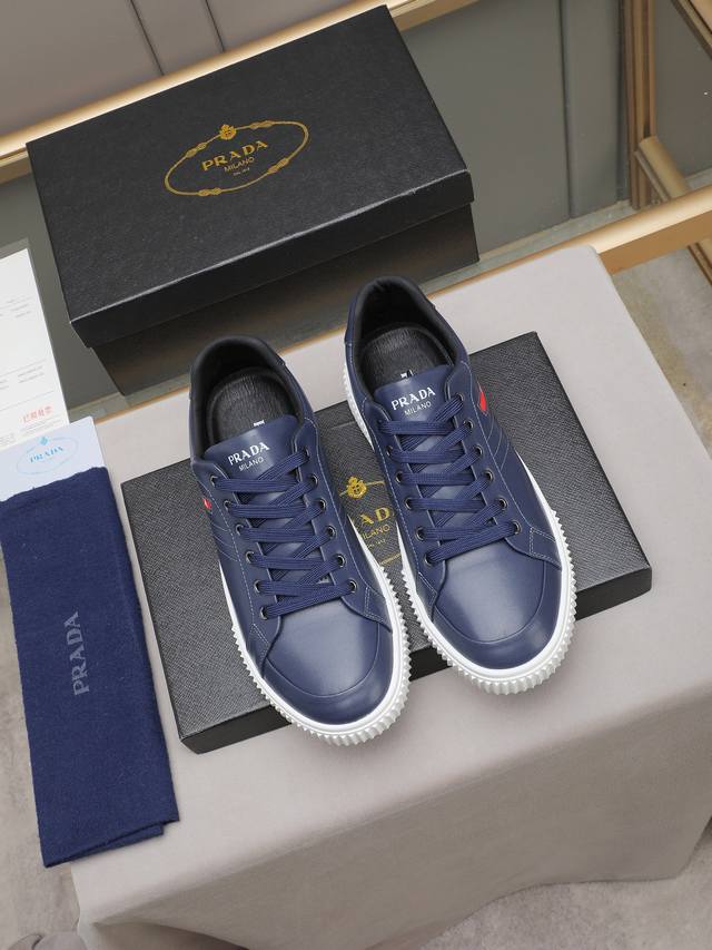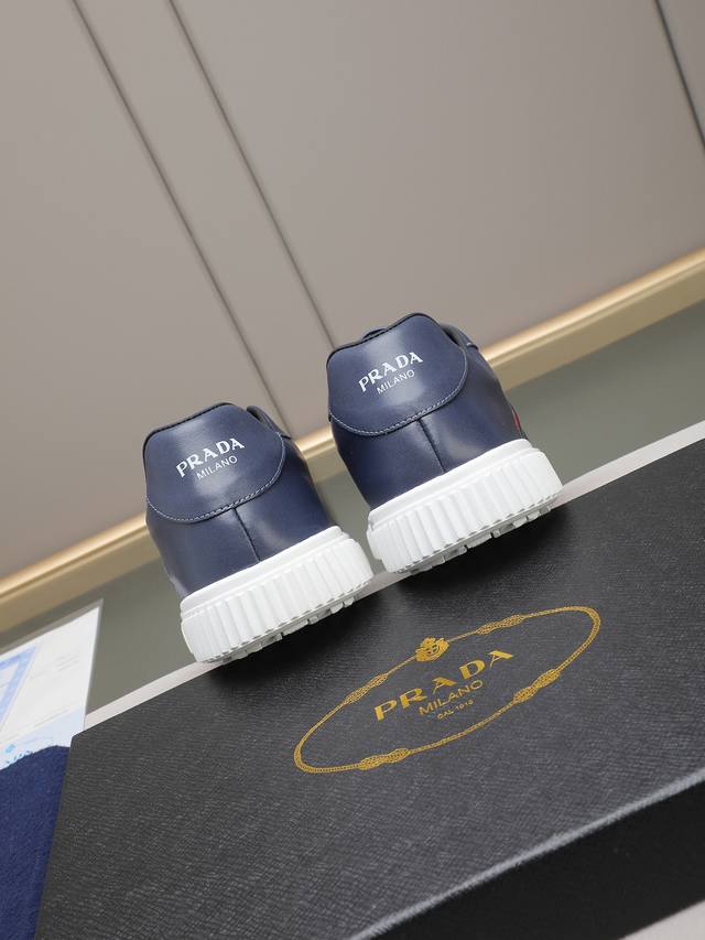 / 新款普拉达休闲男鞋意大利著名的奢侈品品牌,目前超爱的款,脚感很好,洋气时髦,显得脚型很正,走起路来也很轻便~鞋型很正,上脚非常好看!面鞋面进口牛皮水洗羊里,大底