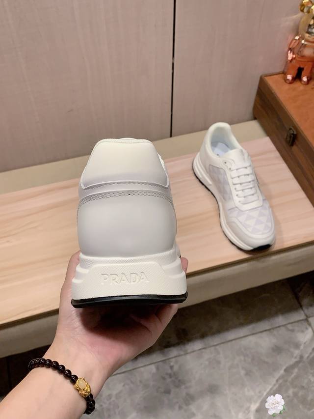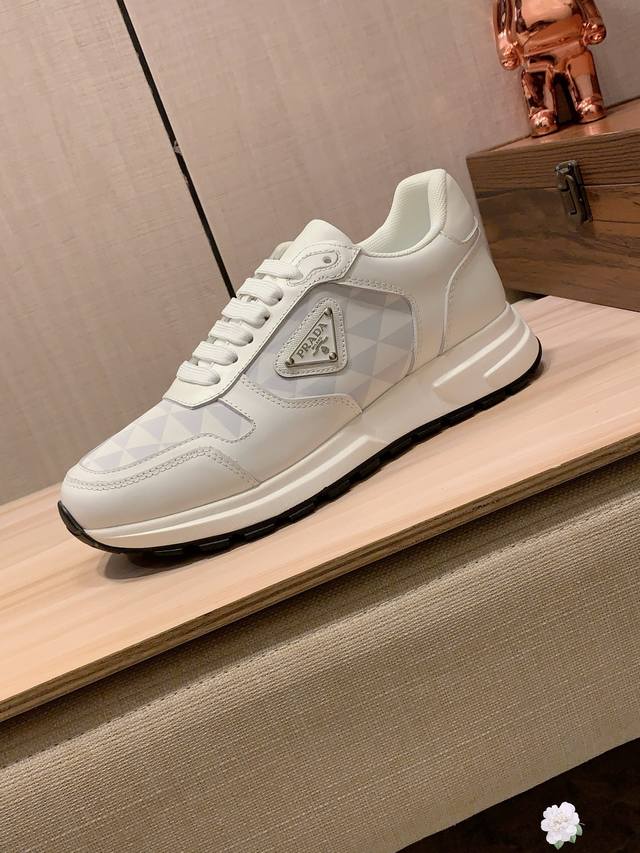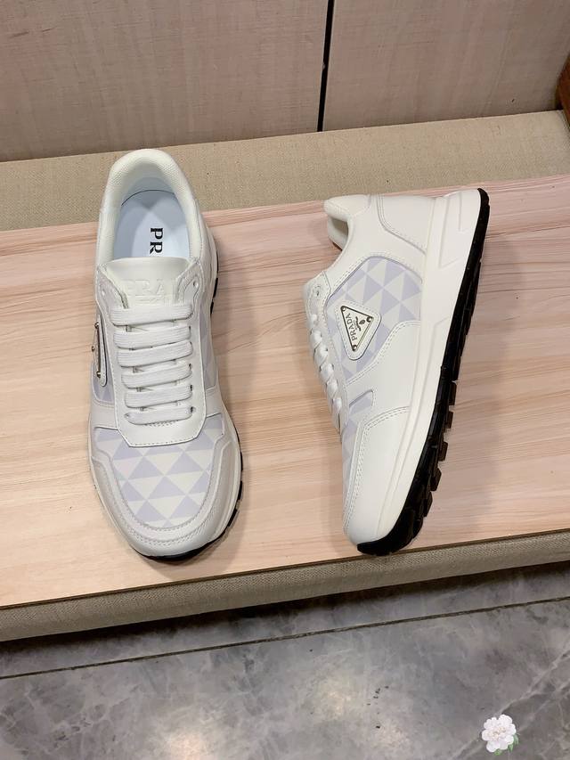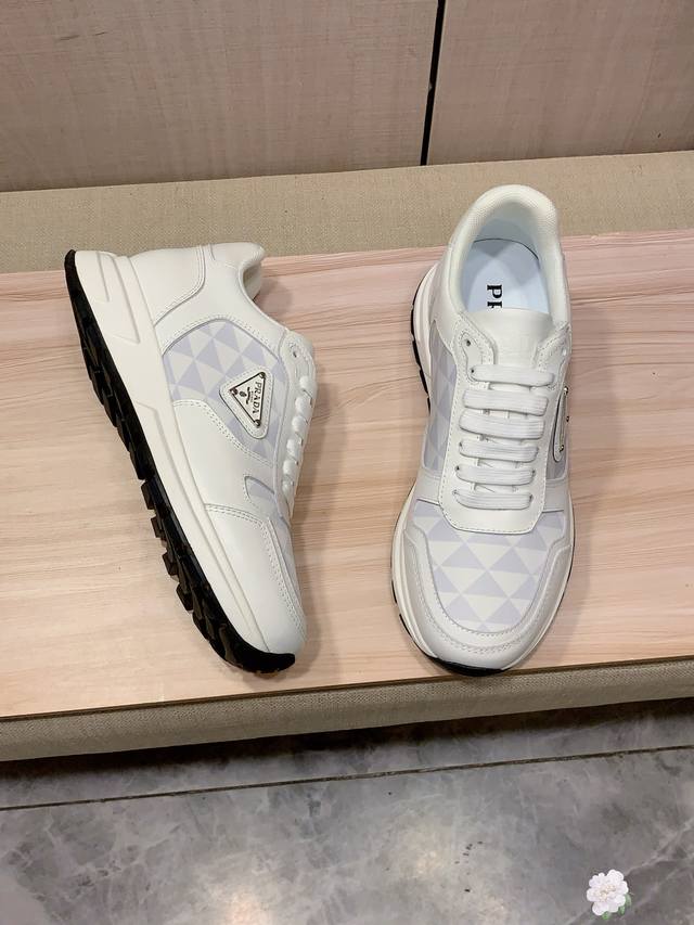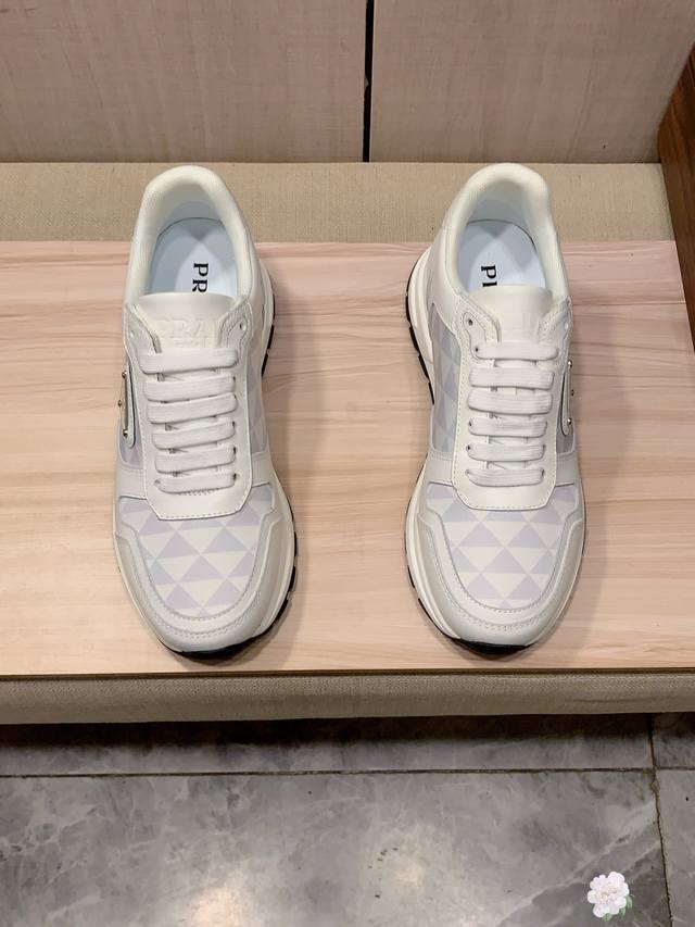 新款: 厂价 普拉达Prada* 最新爆款休闲鞋,顶端品牌 奢侈~代购,顶级~质量。 鞋面選用进口透气牛皮搭配布料材质透气羊皮垫脚 精细做工。原版个性时尚柔软橡膠耐磨防滑大底,上脚轻巧舒适,实物拍摄實物更好看,085:码: 38-44,黑色,白色入选