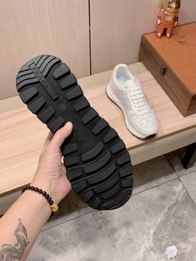 Prad*普拉达新品男士休闲鞋,这款休闲百搭,选用头层牛皮打造,橡胶大底,脚感非常舒适,运用柔和简洁的线条,鞋底轻盈而稳...