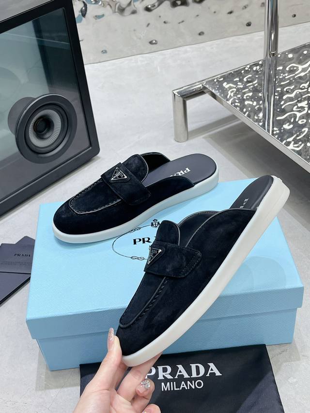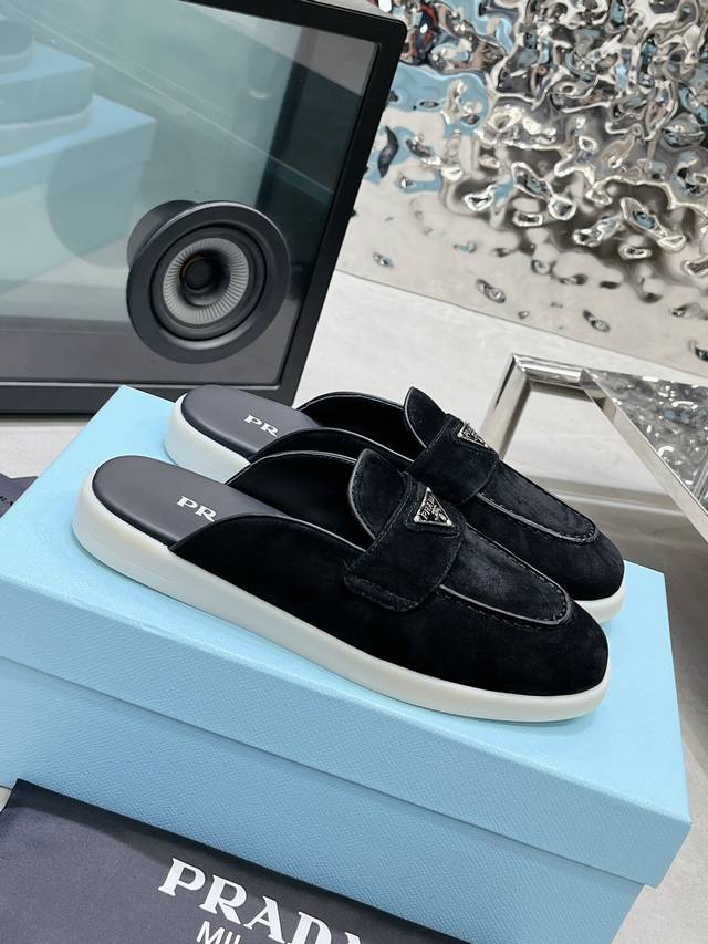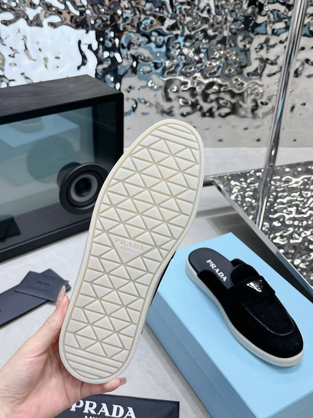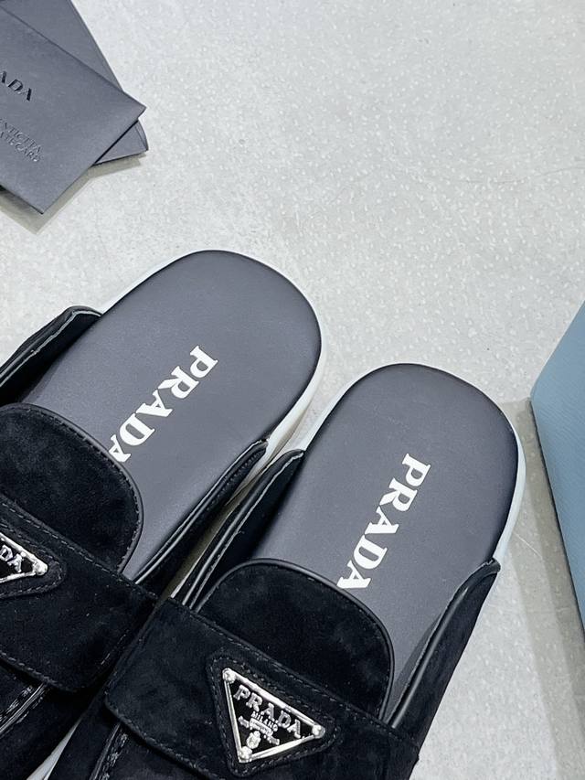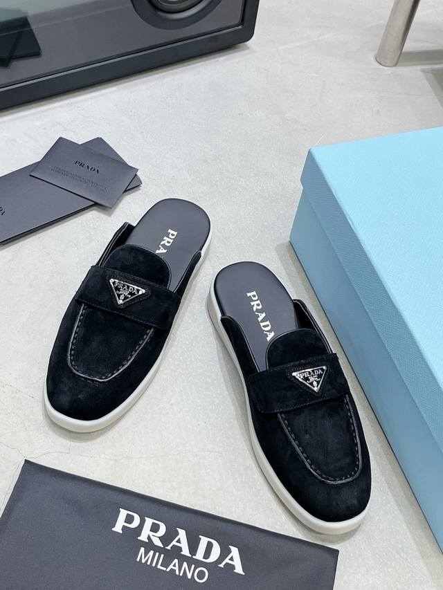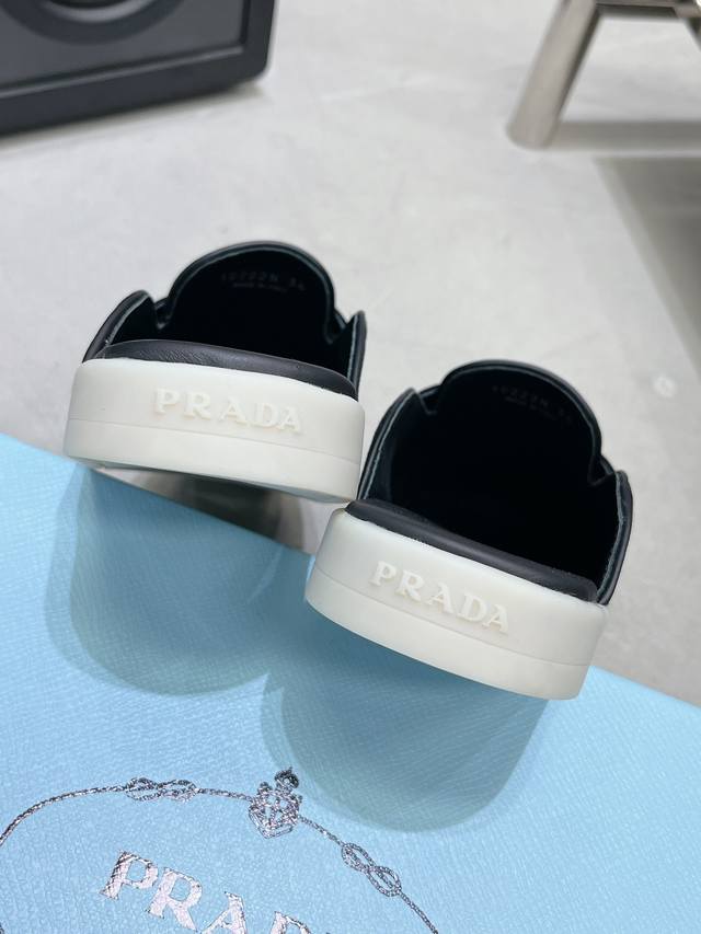 普拉达出实价: 情侣Prada 最新款乐福鞋半拖鞋 火爆系列 演绎都市风尚 设计彰显功能性与科技感 新颖压花橡胶三角形徽标展现品牌标志性元素 全牛皮鞋面,上脚无敌舒服的潮牌系列! 原版一致 鞋面开边珠牛皮和牛反绒,垫脚羊皮轻盈防滑生胶大底
