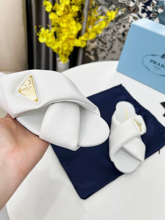 普拉达面包拖顶级新款2025穆勒鞋穿起来特别方便,出门换鞋不用弯腰不用系鞋带,穿上就走,春夏秋三季可穿。这双穆勒鞋是橡胶发泡底,很轻便,Prada标志性的珐琅三角标辨识度也很高百搭哦 Prada 还能出这么可爱的鞋真是没想到,可见面包鞋的流行程度! 材料:进口混种羊皮 码数:35-41