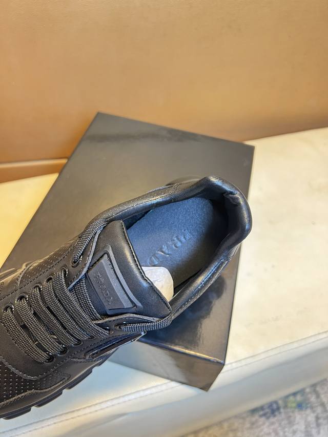 顶级版本Prada 普拉达 经典款纯黑拼接运动鞋...