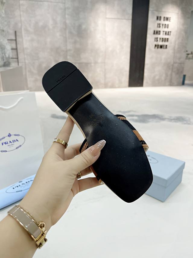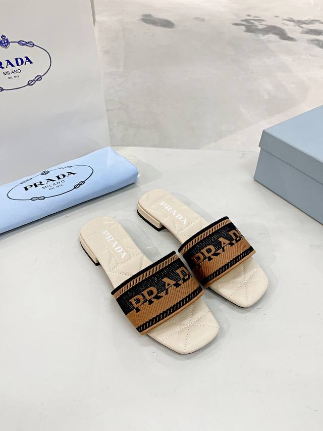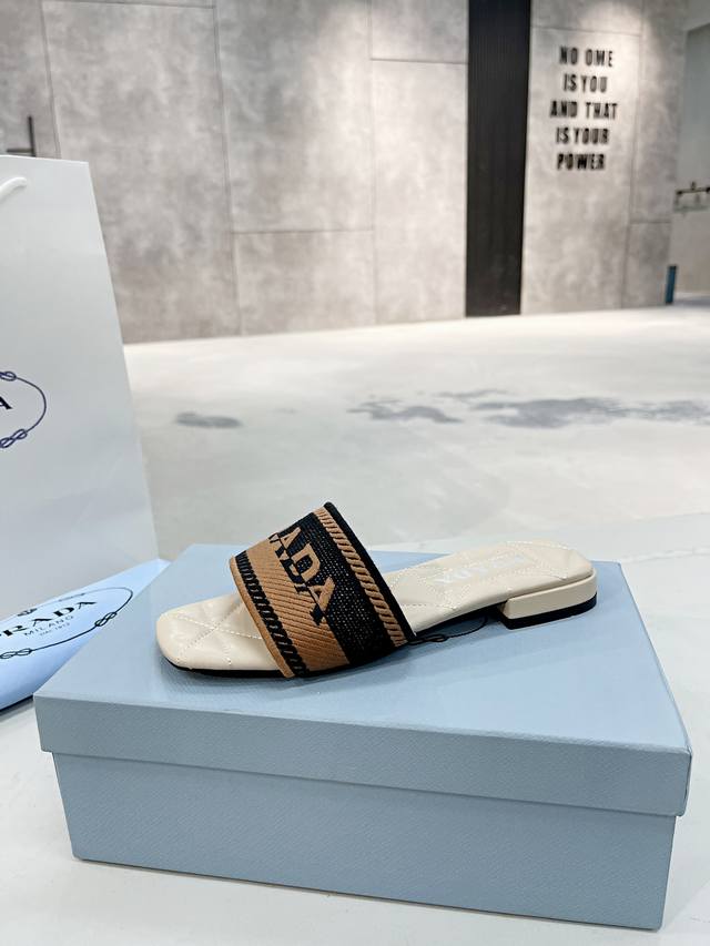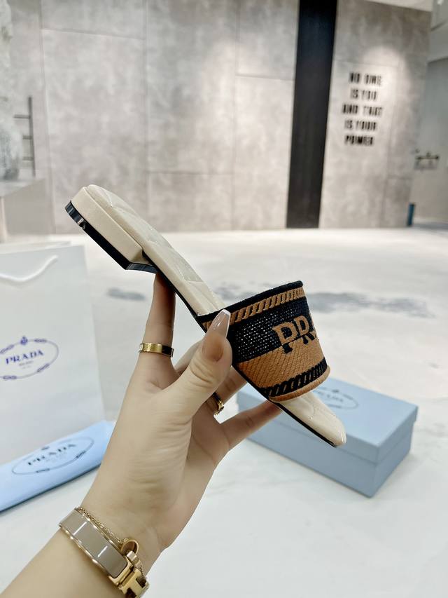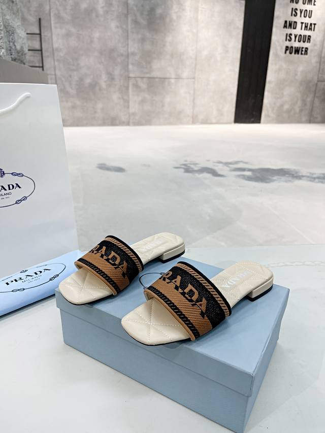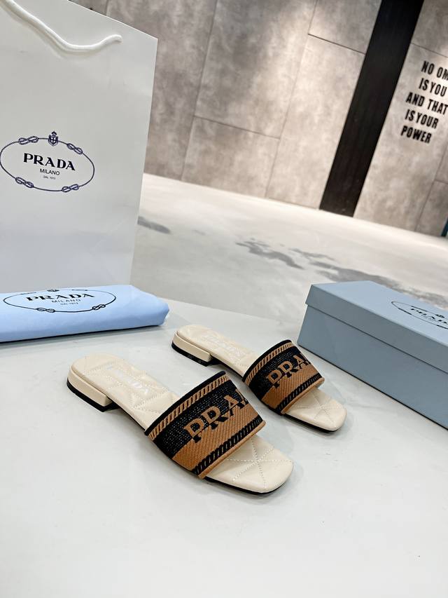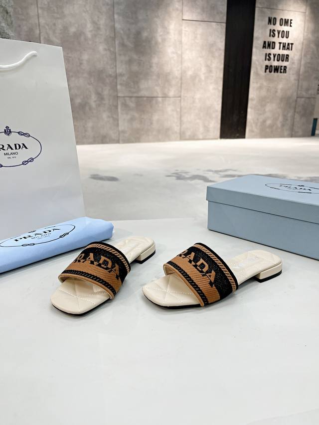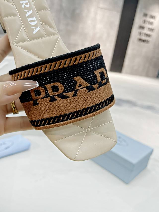 普拉达 Prada电绣凉拖原版1:1复刻,独家立体徽标彰显原版品质,色任选 35-43码 ,出厂价 皮底+30